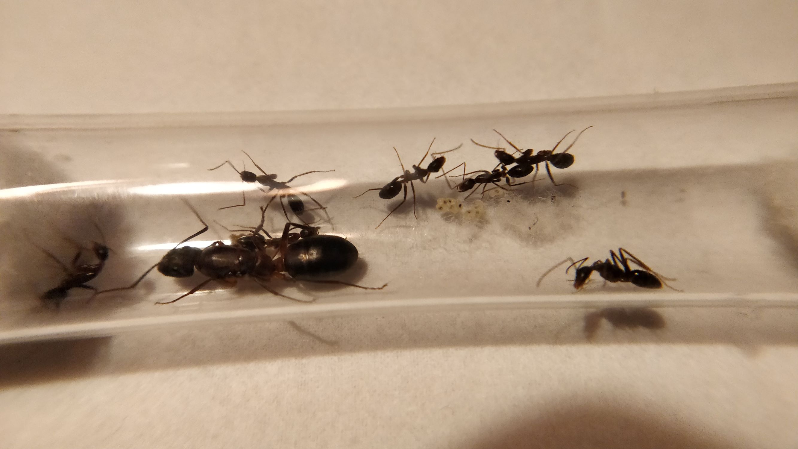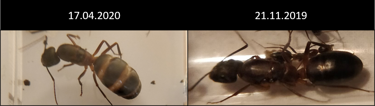 Meine alte Camponotus barbaricus Kolonie hatte leider gegen Ende letzten Jahres auf mysteriöse Weise ihre Arbeiterinnen verloren (siehe: topic60065.html). Ich weiss leider immer noch nicht, was zu den "spastischen" Verhalten (siehe Videos von Tag 54) der Arbeiterinnen geführt hat (bei allen gleichzeitig!). Ich vermute ggf. mit Pestiziden belasteter Honig.