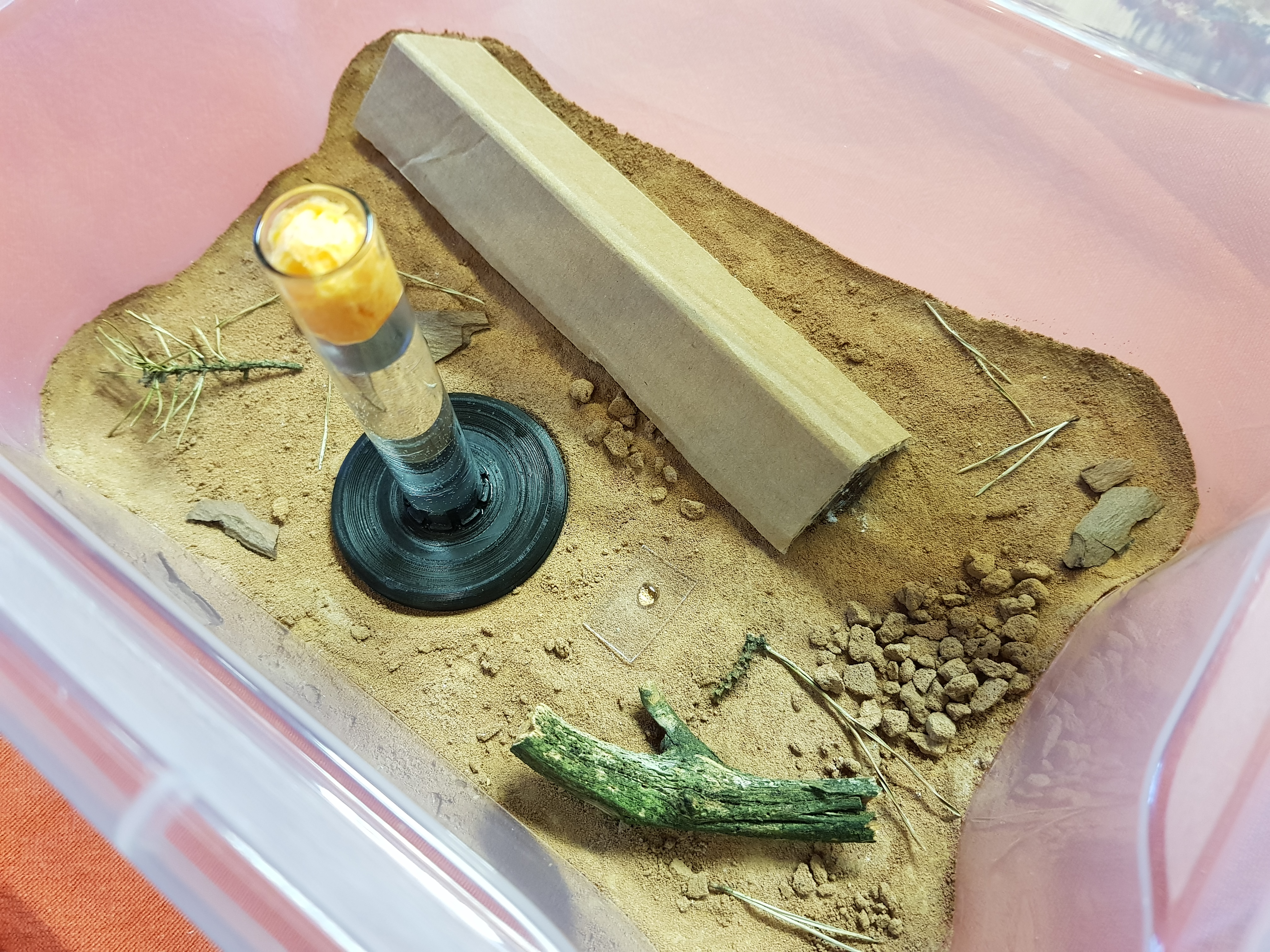 versehen. Außerdem habe ich beim Deckel diese Dinger entfernt, welche den Verschluss zur Box herstellen, damit ich sie auf und zu machen kann, ohne dass es die Ameisen jedes Mal als ein Erdbeben empfinden.
