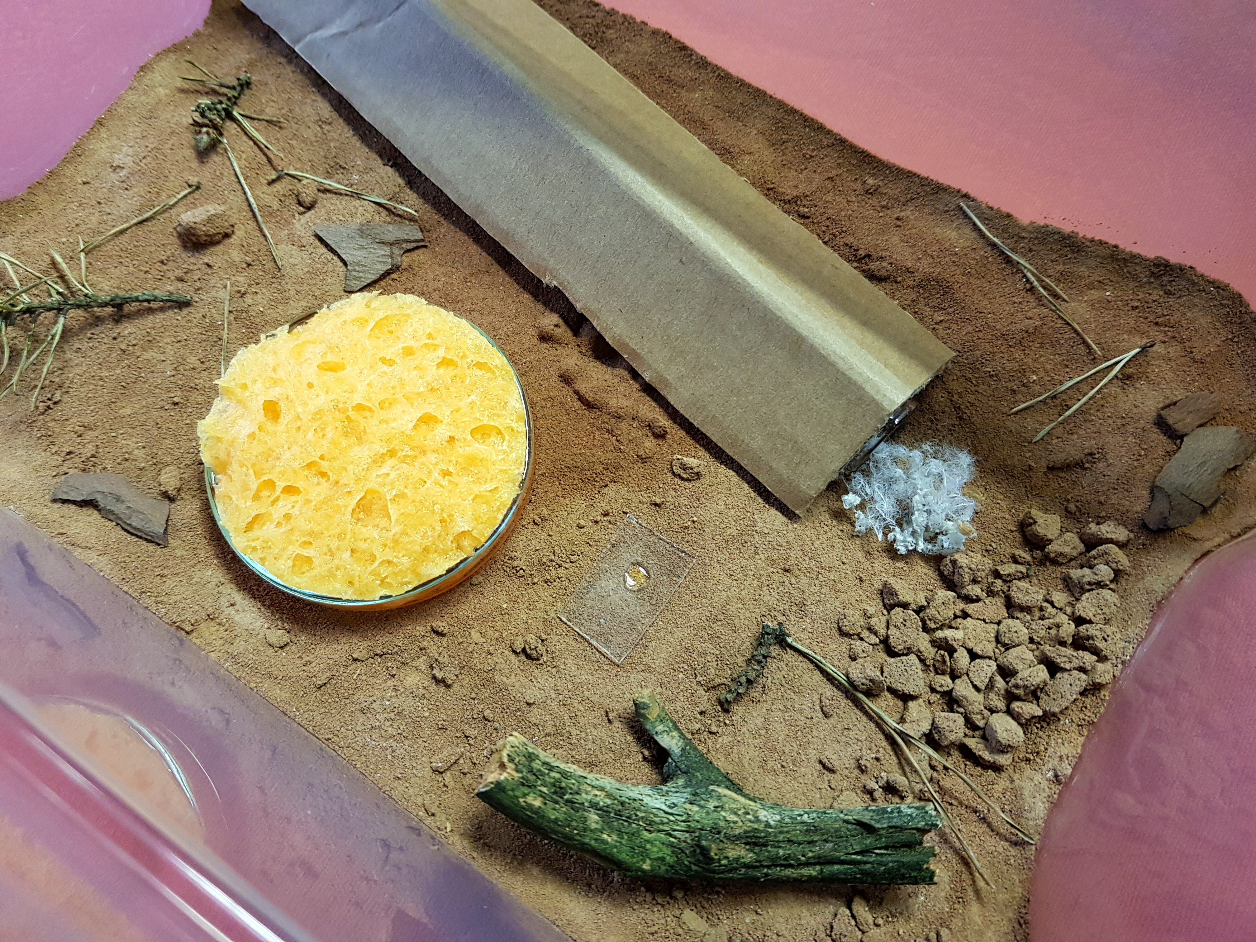 Um auszuschließen, dass die Ameisen es zu trocken haben, habe ich zuvor noch etwas den Bodengrund befeuchtet und jeweils ein ganzes RG als