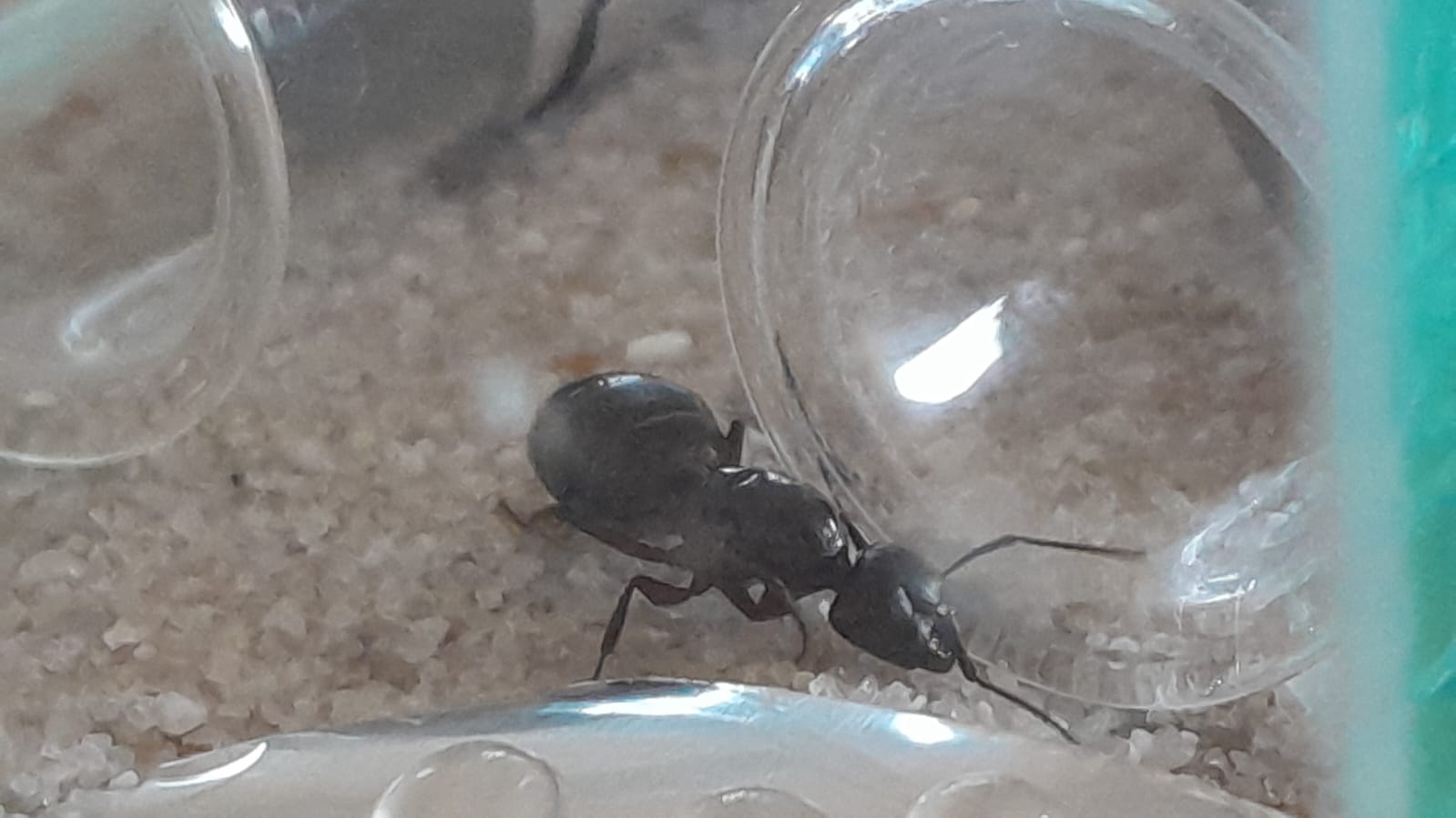 Winterruhe hat sie sehr gut überstanden und war Anfang März 2024 nach wie vor putzmunter (auch wenn die Position, in der Camponotus-Gynen