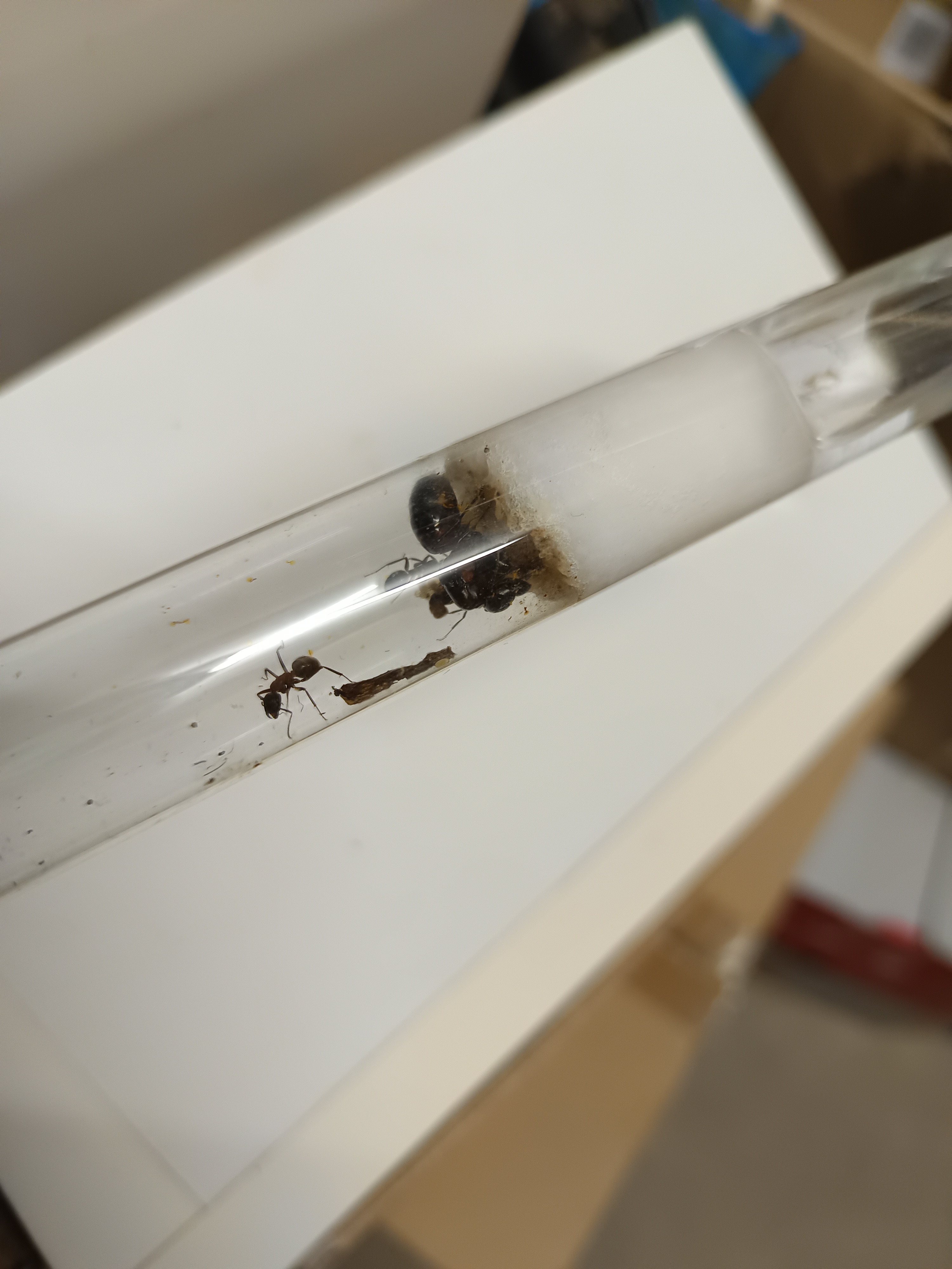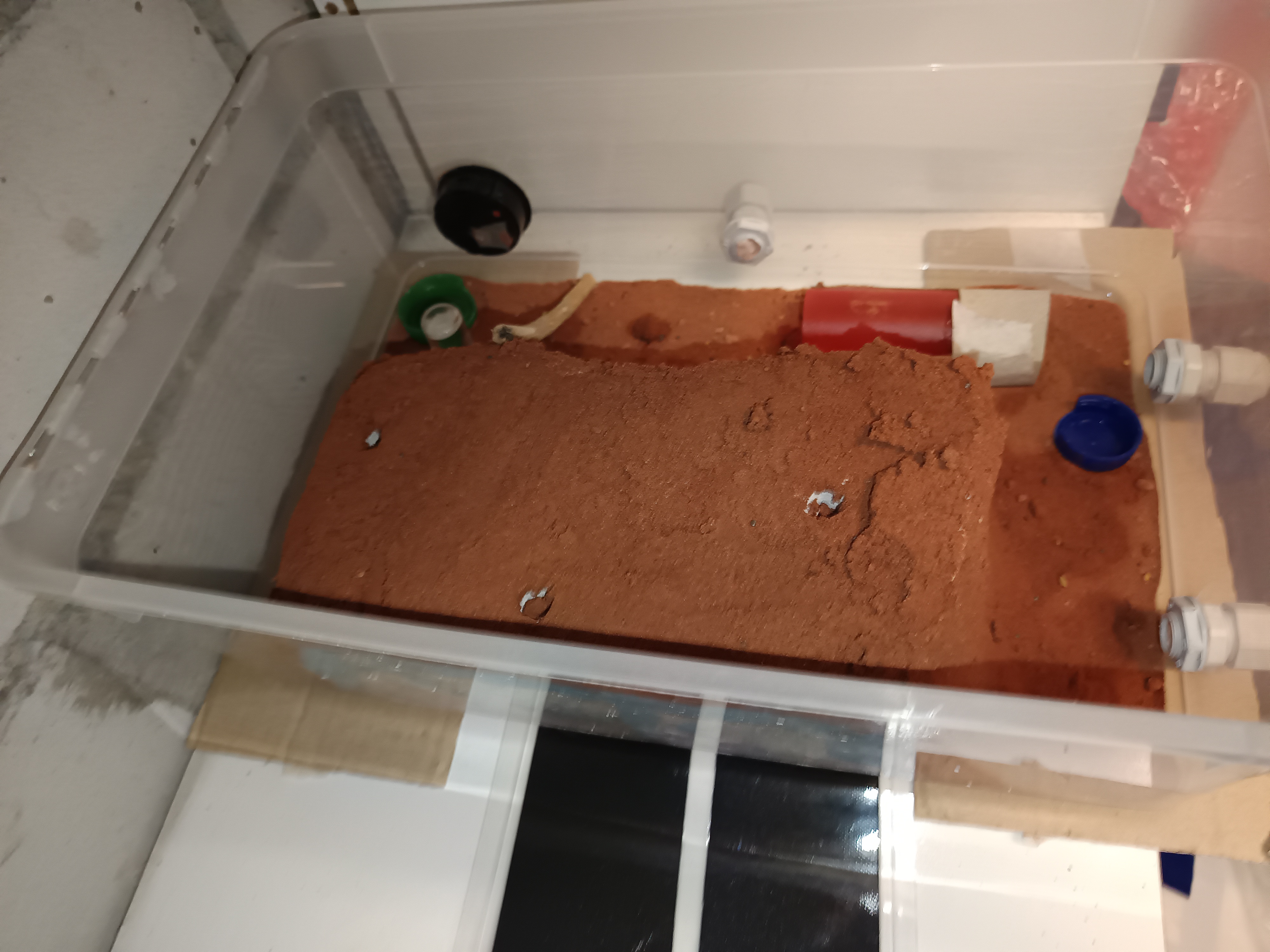 PS: nehme gerne als PN Tipps entgegen wie ihr das mit der Feuchtigkeit macht, habe zwei Bohrungen an den hinteren teilen des Nestes gemacht wie man auf den Bild sieht, aber sollte man dort SchlÀuche mit Stopfen reinstecken damit keine Ameise da rein kann ??