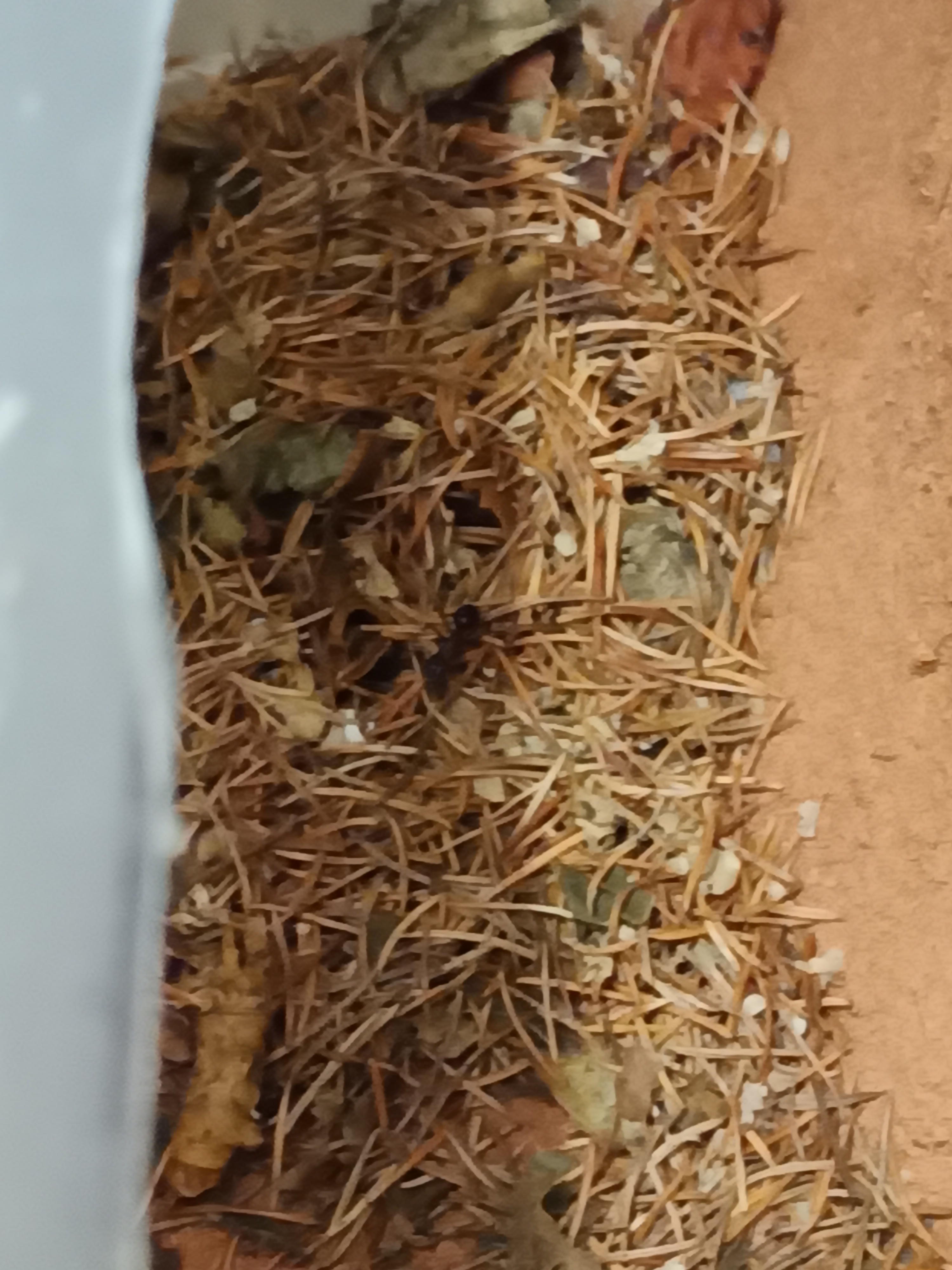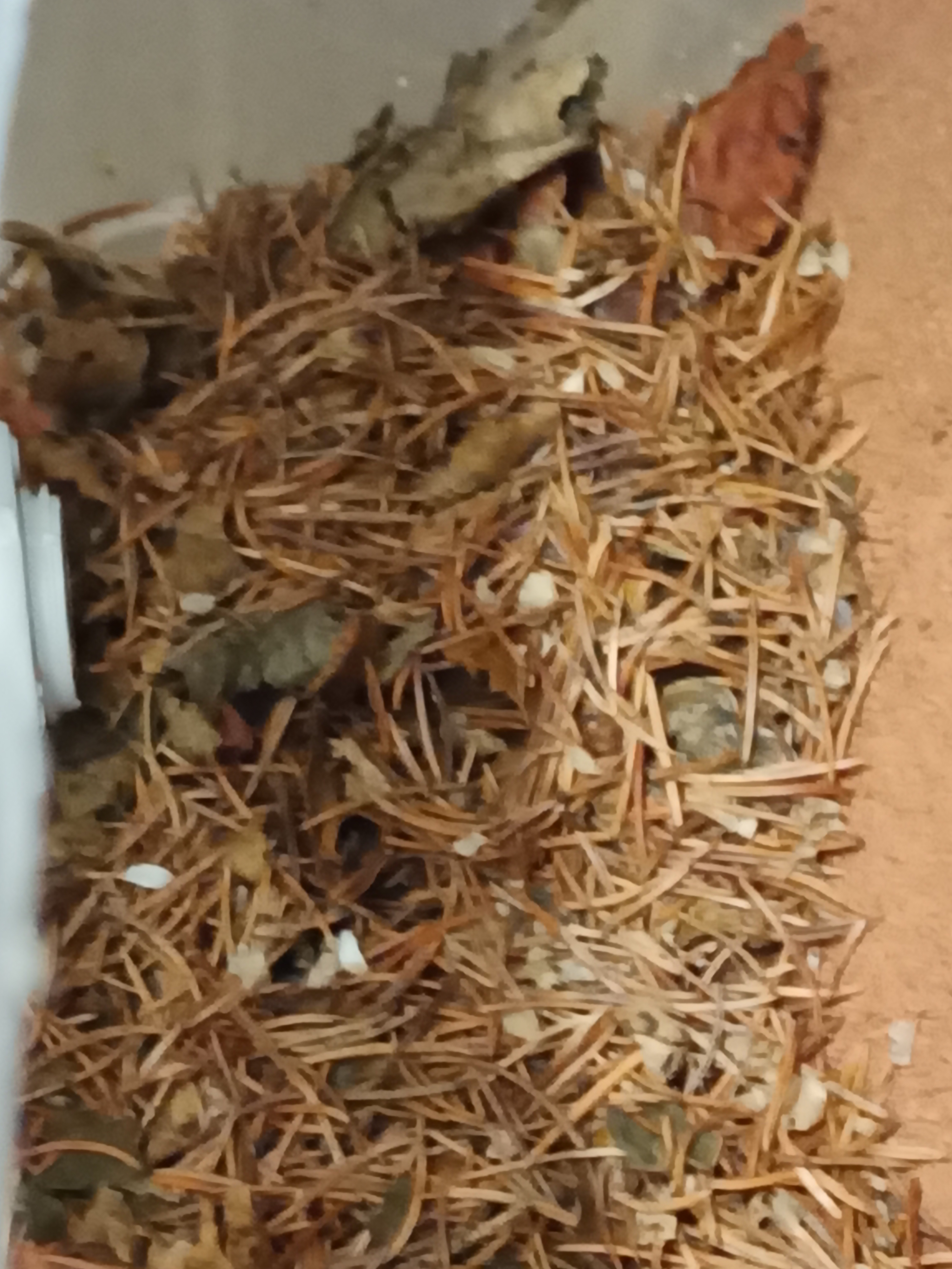 Habe Grade etwas gesehen was mich etwas verwundert, ich habe ja ein wenig Nadeln und zerkleinerte BlĂ€tter mit rein getan damit sie sich wohler fĂŒhlen und dann entdecke ich heute das :