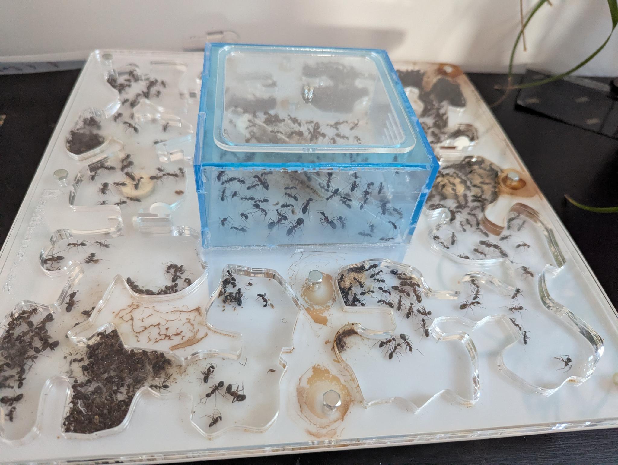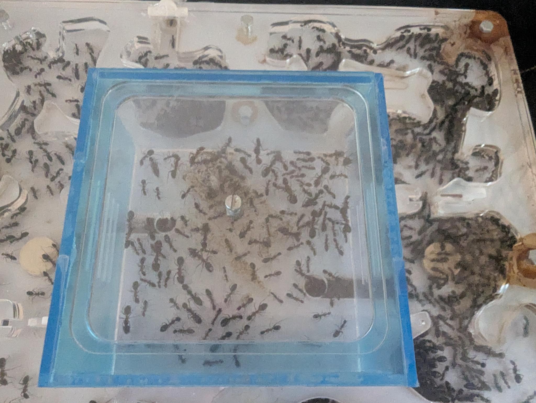 Aus meiner bisherigen Erfahrung ist das Thema Stress bei Ameisen äußerst kritisch. Ich habe mehrfach beobachtet, dass Arbeiterinnen, die beispielsweise umgesetzt werden müssen, durch den dabei entstehenden Stress sterben können. Sie laufen dann extrem hektisch umher und verenden teilweise bereits nach wenigen Minuten. Daher wird es entscheidend sein, sowohl die Königin als auch die Arbeiterinnen möglichst wenig zu stressen.