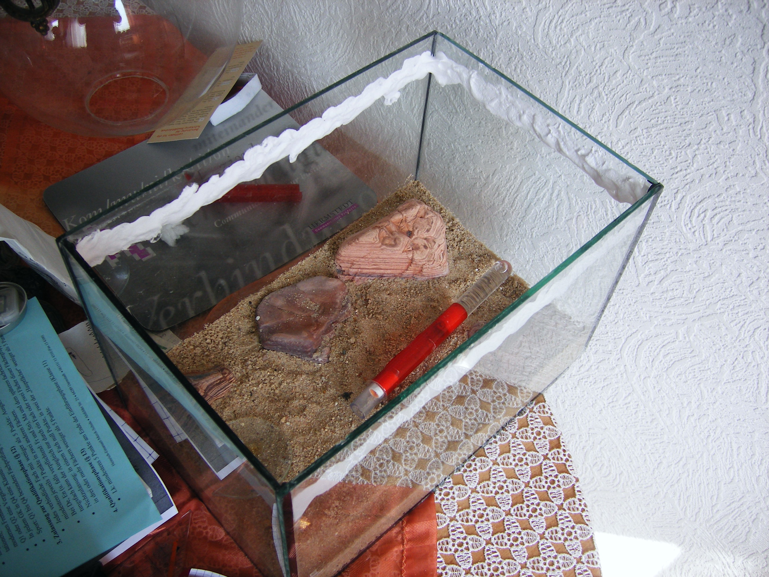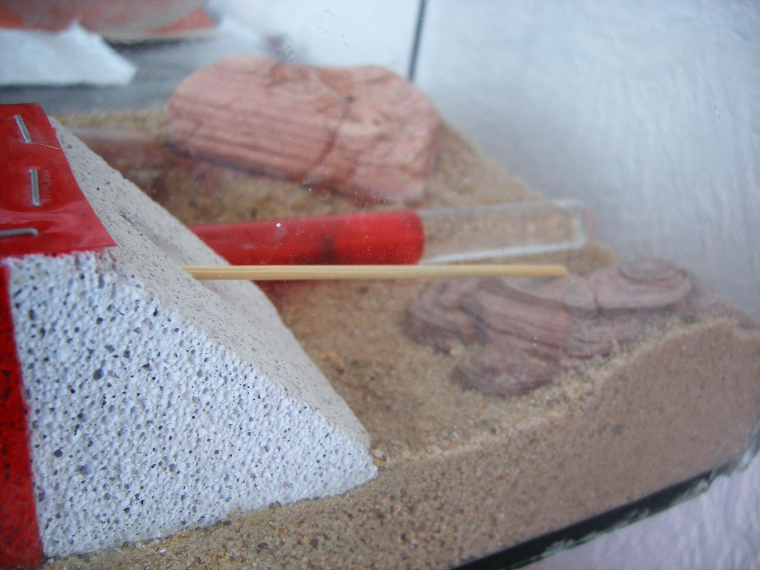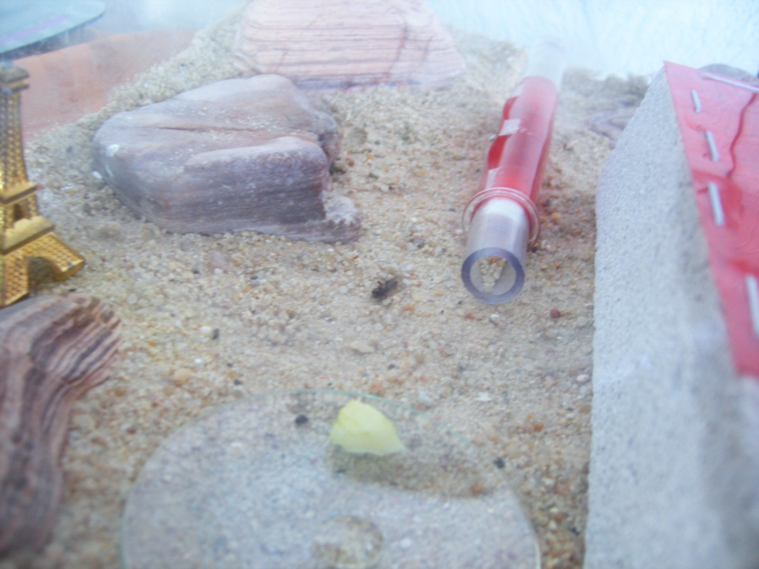 Bodengrund: Abgebackener Sand (habe keine Kiesschicht oder ähnliches als Bodengrund verwendet,da die AMeisen es leichter haben das Sand als Baumaterial zu verwenden.)
