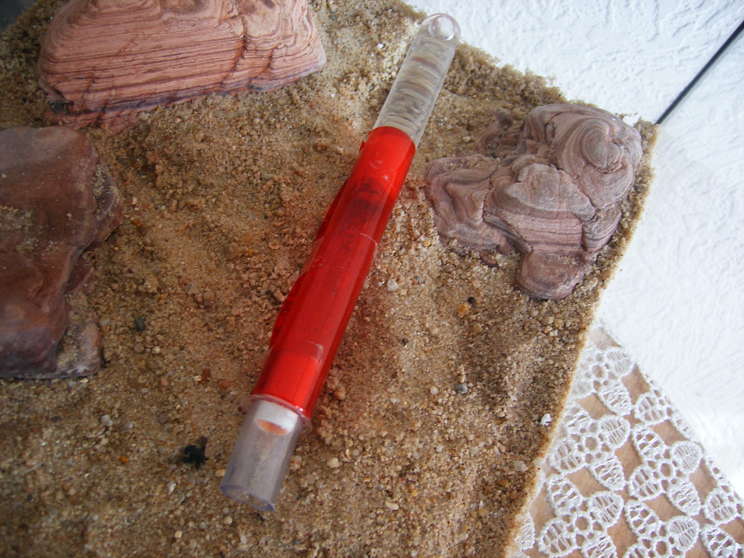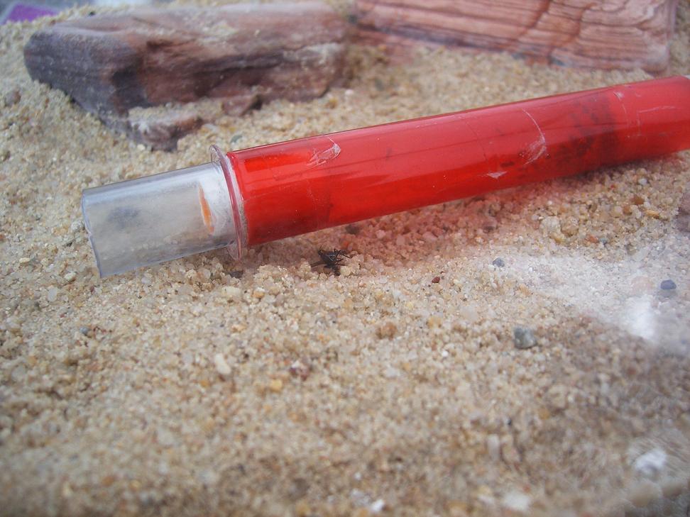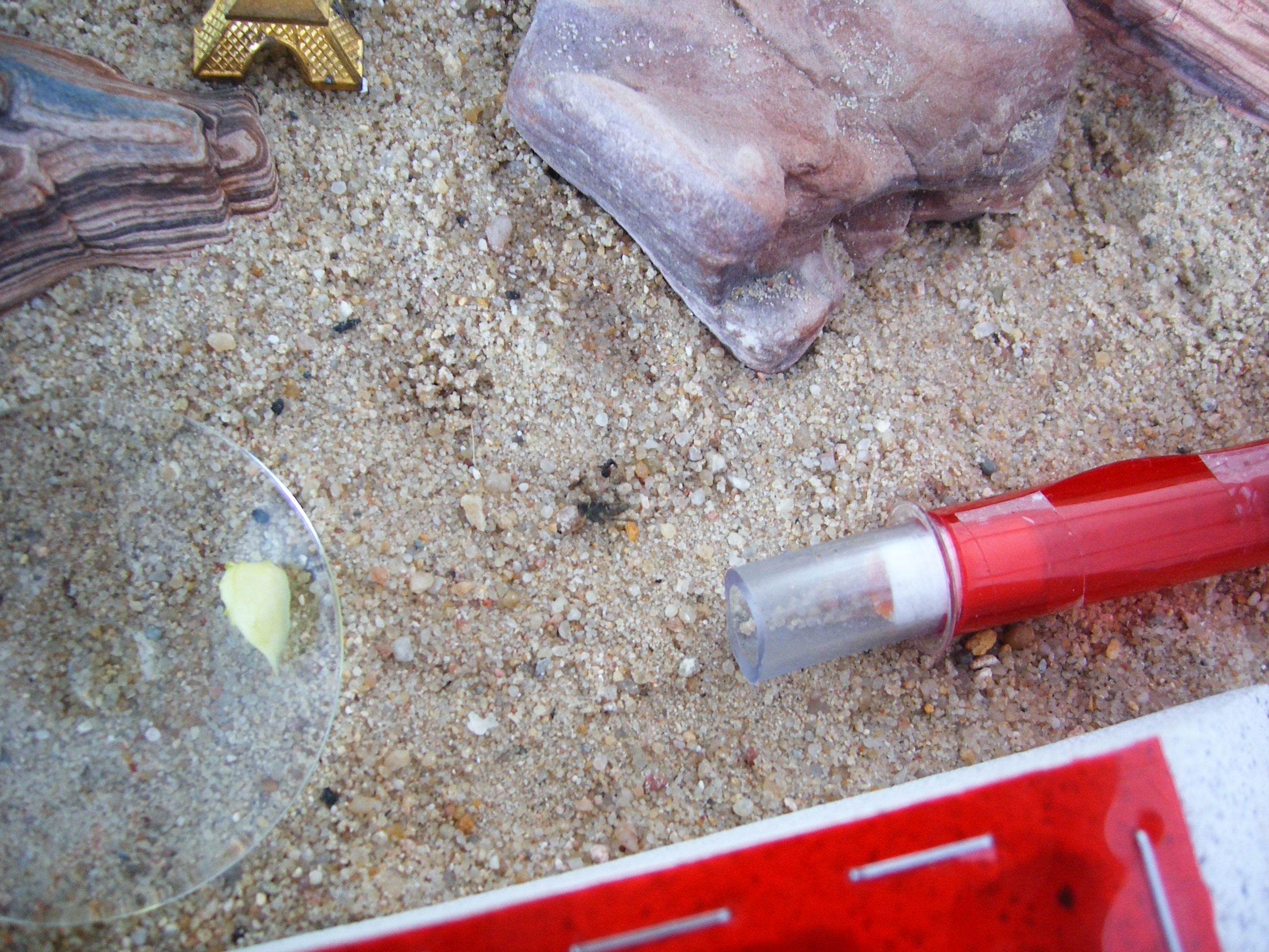 Bodengrund: Abgebackener Sand (habe keine Kiesschicht oder ähnliches als Bodengrund verwendet,da die AMeisen es leichter haben das Sand als Baumaterial zu verwenden.)
