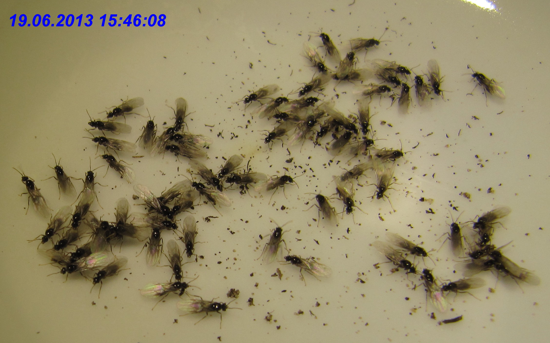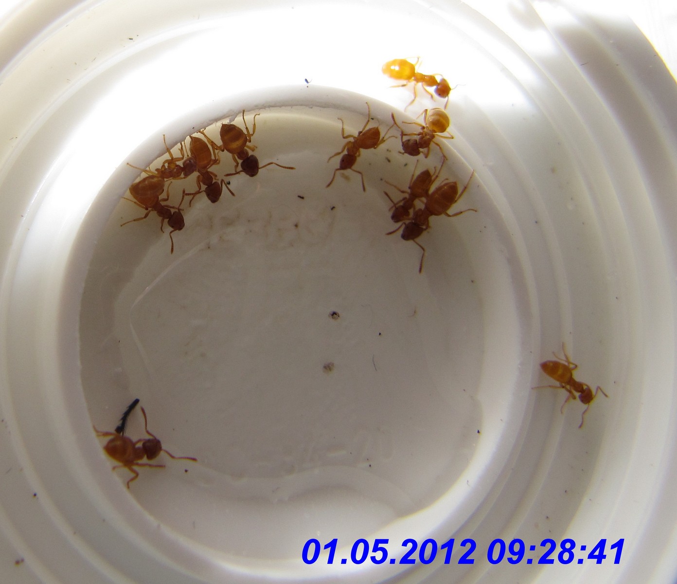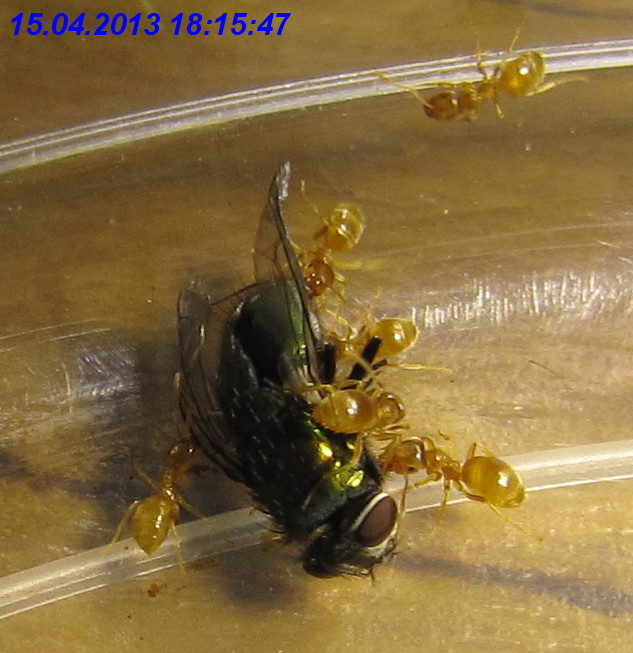 Von den Lasius cf. flavus waren zu diesem Zeitpunkt zumindest noch zahlreiche Arbeiterinnen vorhanden, die ich regelmäßig am angebotenen Zuckerwasser beobachten konnte. Sogar eine dealate