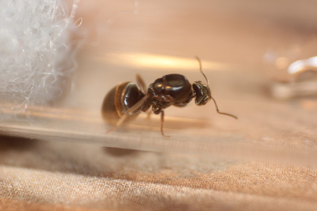 Da sie mir in der Taekwon-do Umkleide quasi schon fast in die Arme gesprungen ist und nun auch schon Eier gelegt hat habe ich beschlossen die vermutliche Lasius niger Gyne in meine Obhut zu nehmen :)