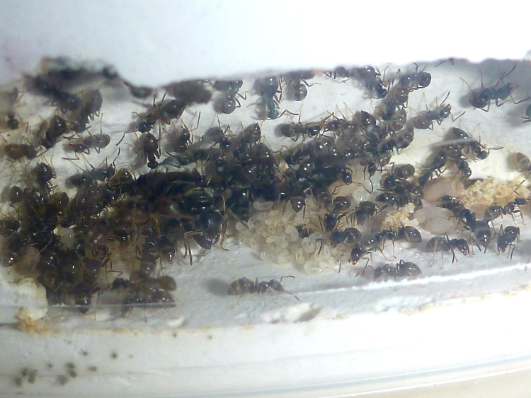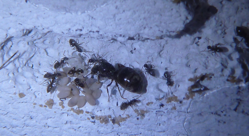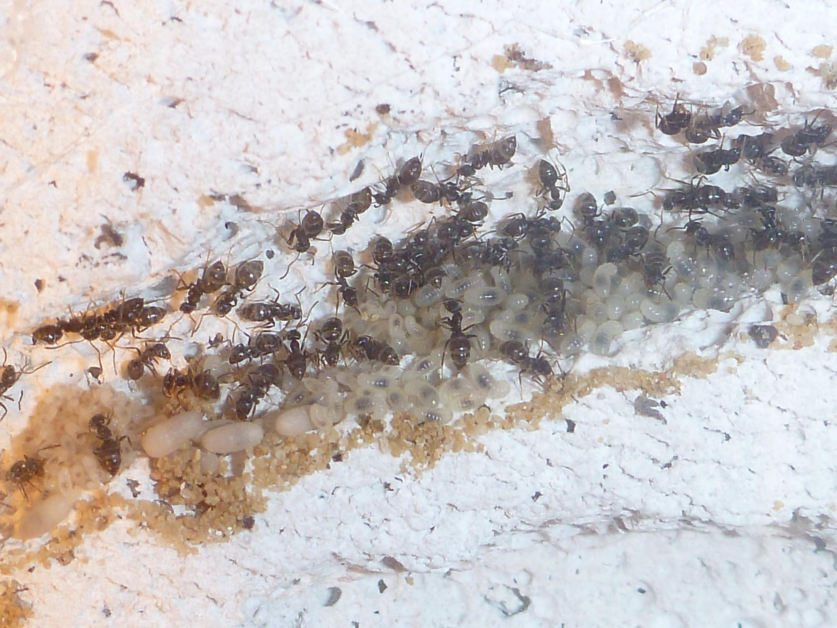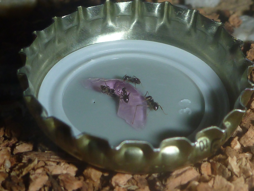 Zum einen wurde das Wasser im RG knapp, zum anderen wollte ich sie besser beobachten. Insgesamt bereue ich den Schritt ein wenig, da er mit sehr viel Stress für mich und vor allem für die Ameisen verbunden war, allerdings scheinen die Ameisen das gut überstanden zu haben. Lasius niger ist echt hart im Nehmen.