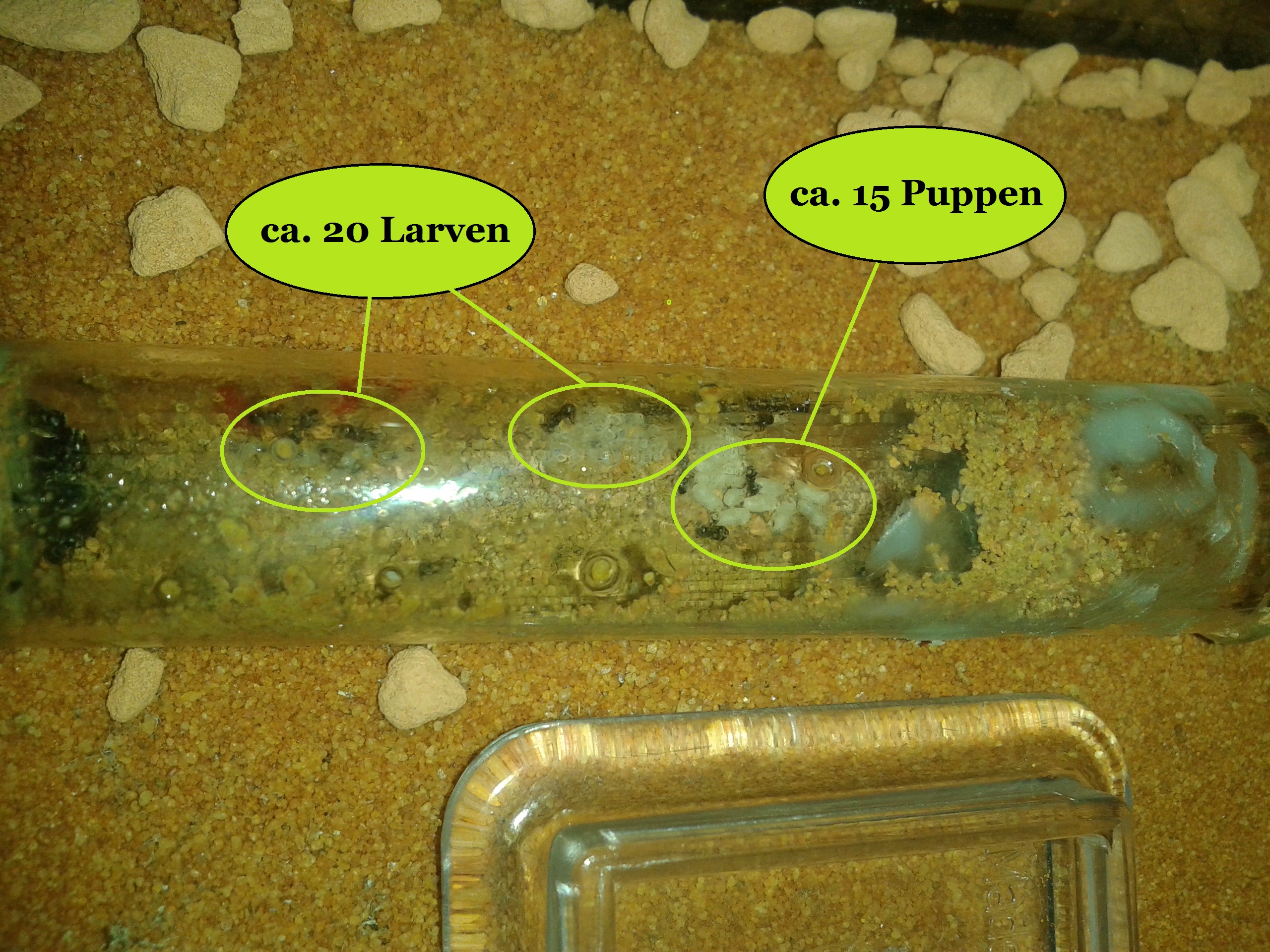 Mit Reagenzgläsern bewaffnet ging es auf Gynensuche, dutzende gefunden und 4 Gynen eingepackt! Die Haltung gestaltet sich wie folgt: