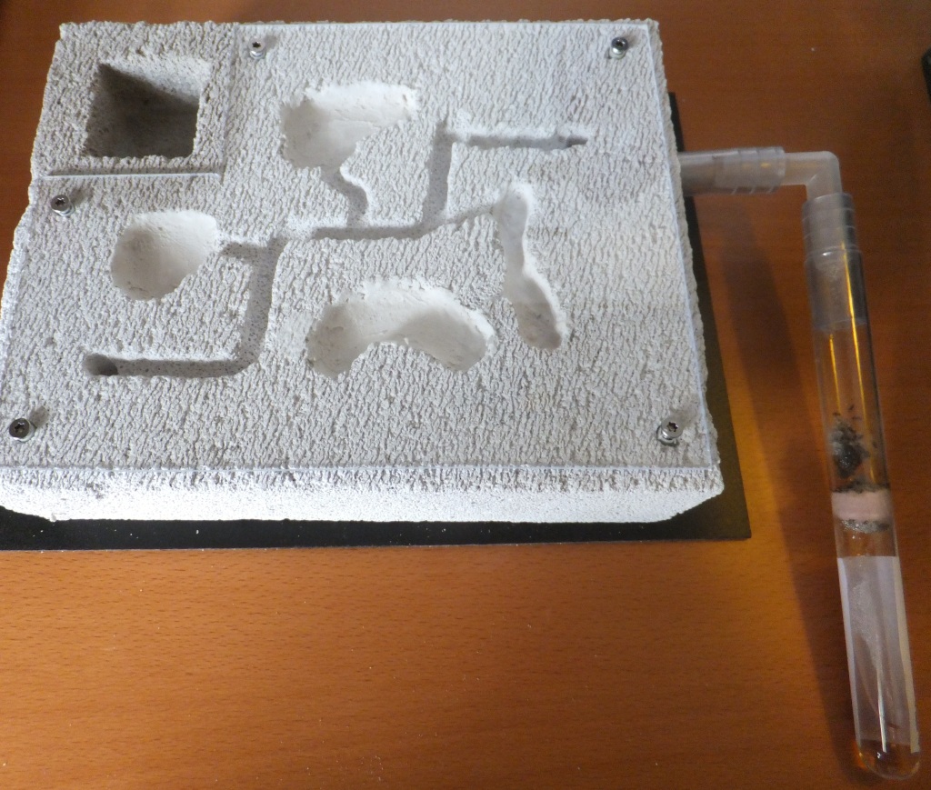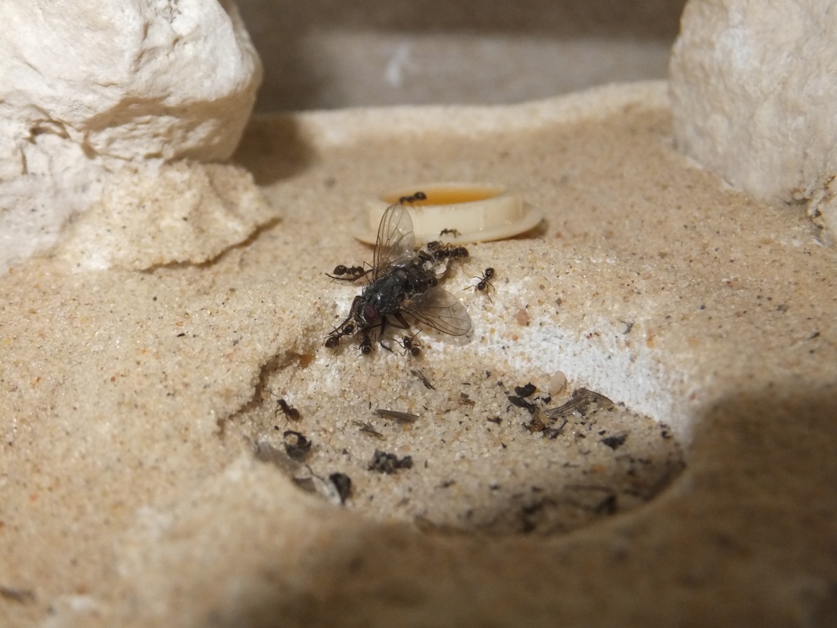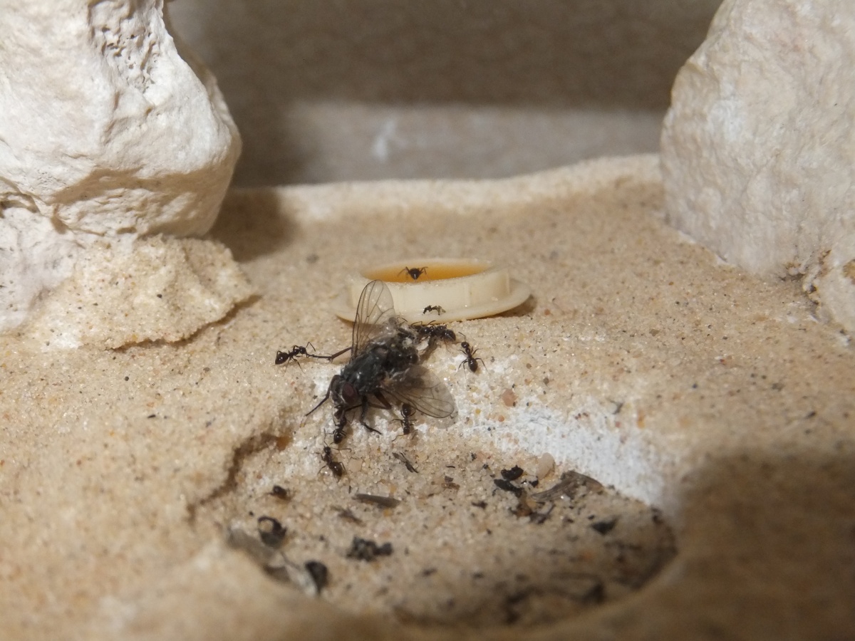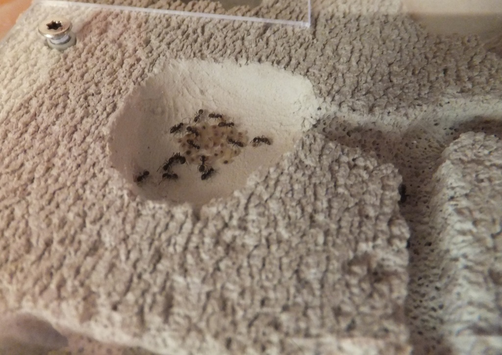 Zusammen mit ein paar Arbeiterinnen, den Eiern, und ab und zu werden die