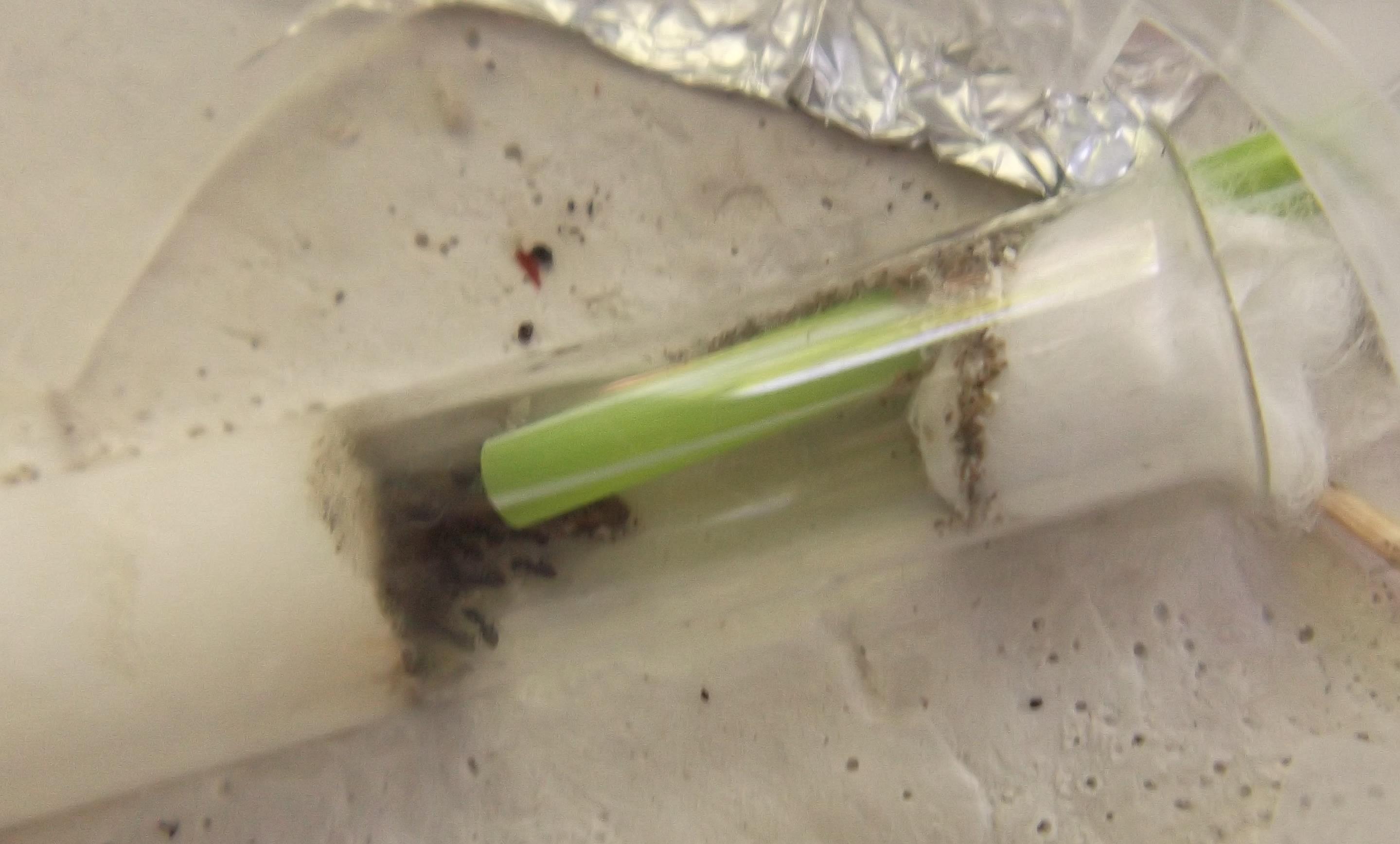Beim nächsten Mal werde ich die Nestkammer im Reagenzglas auf jeden Fall kleiner gestalten. Vielleicht war die schlechte Entwicklung durch die unpassenden Ausmaße bedingt.