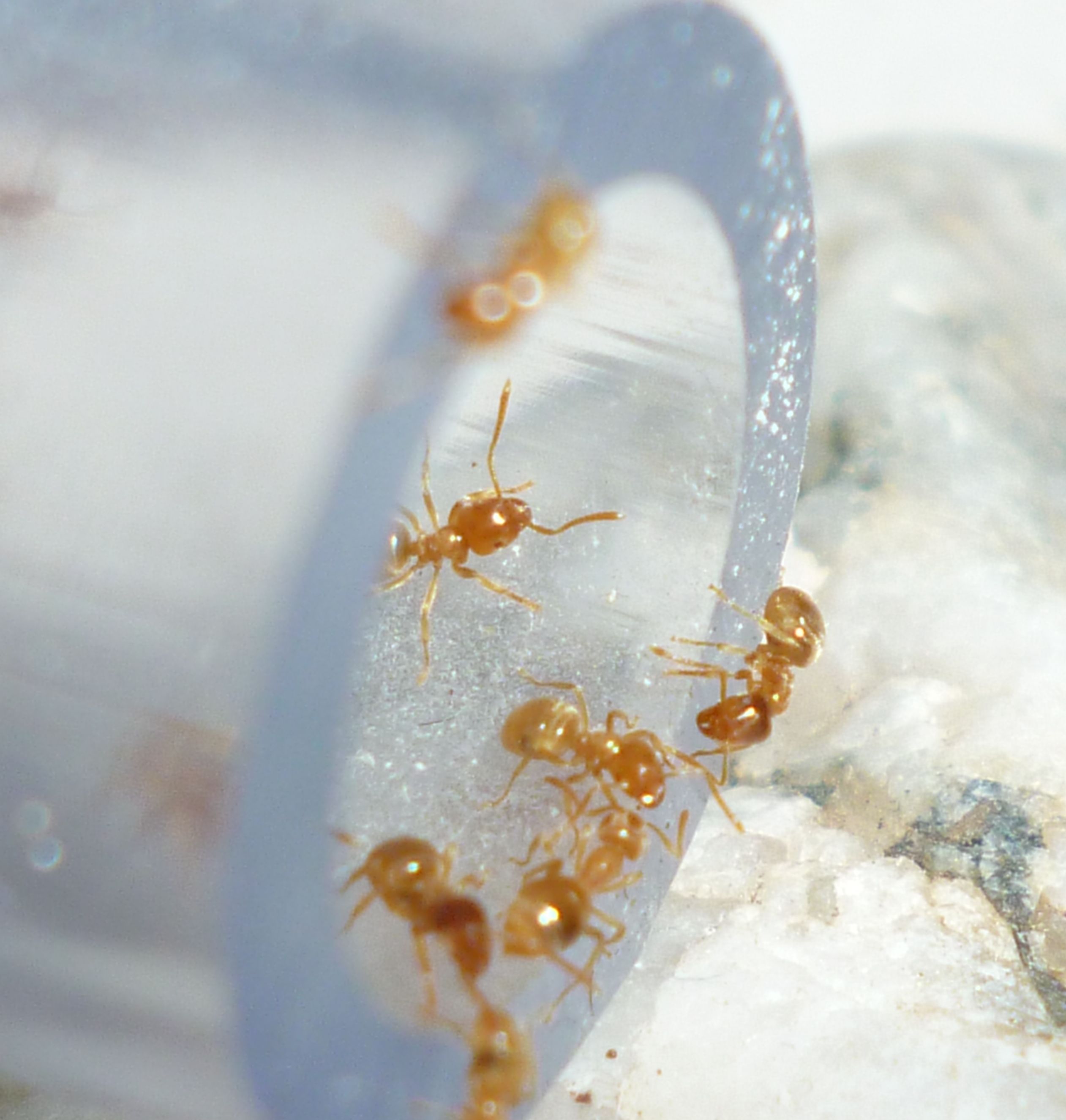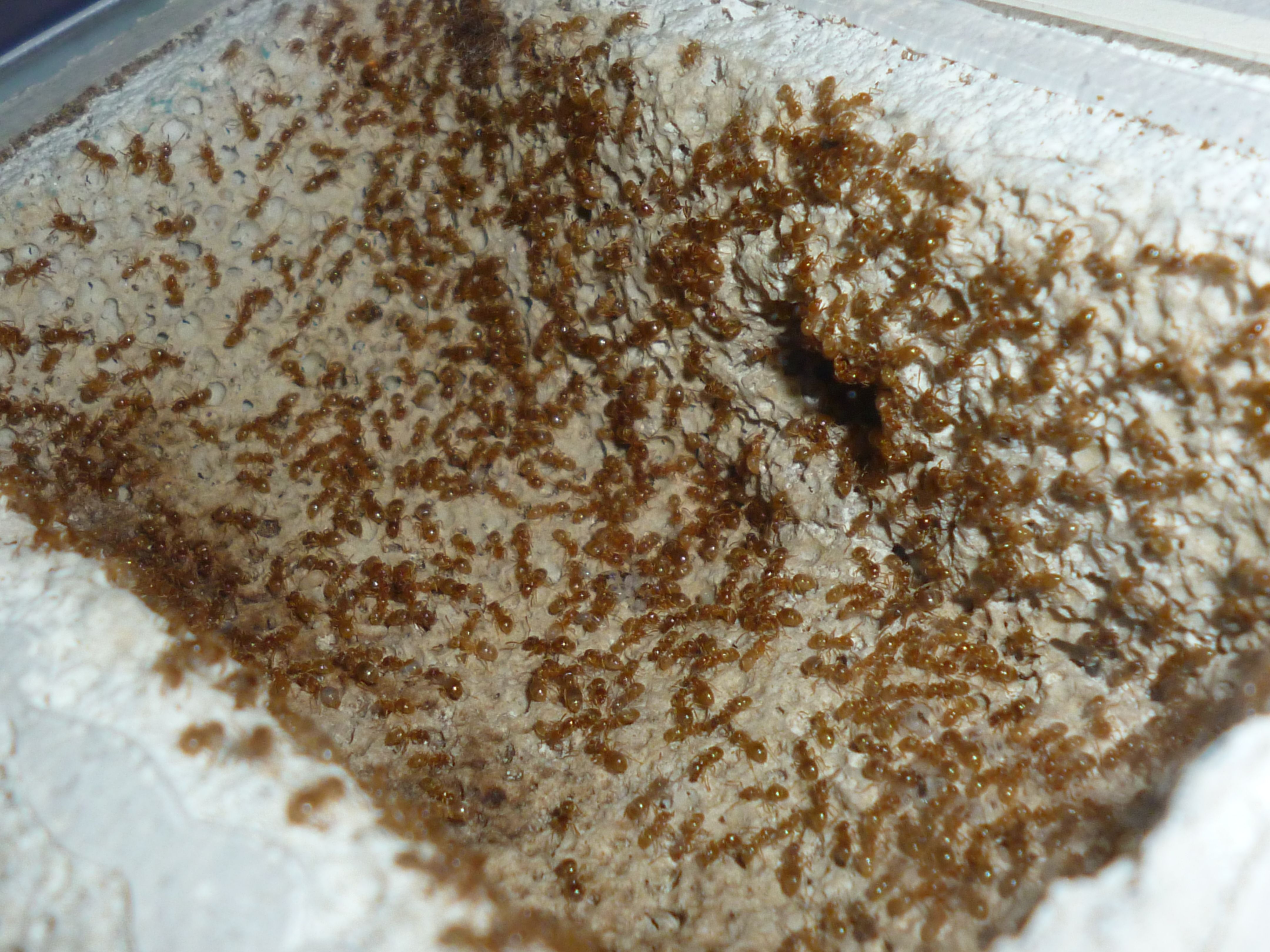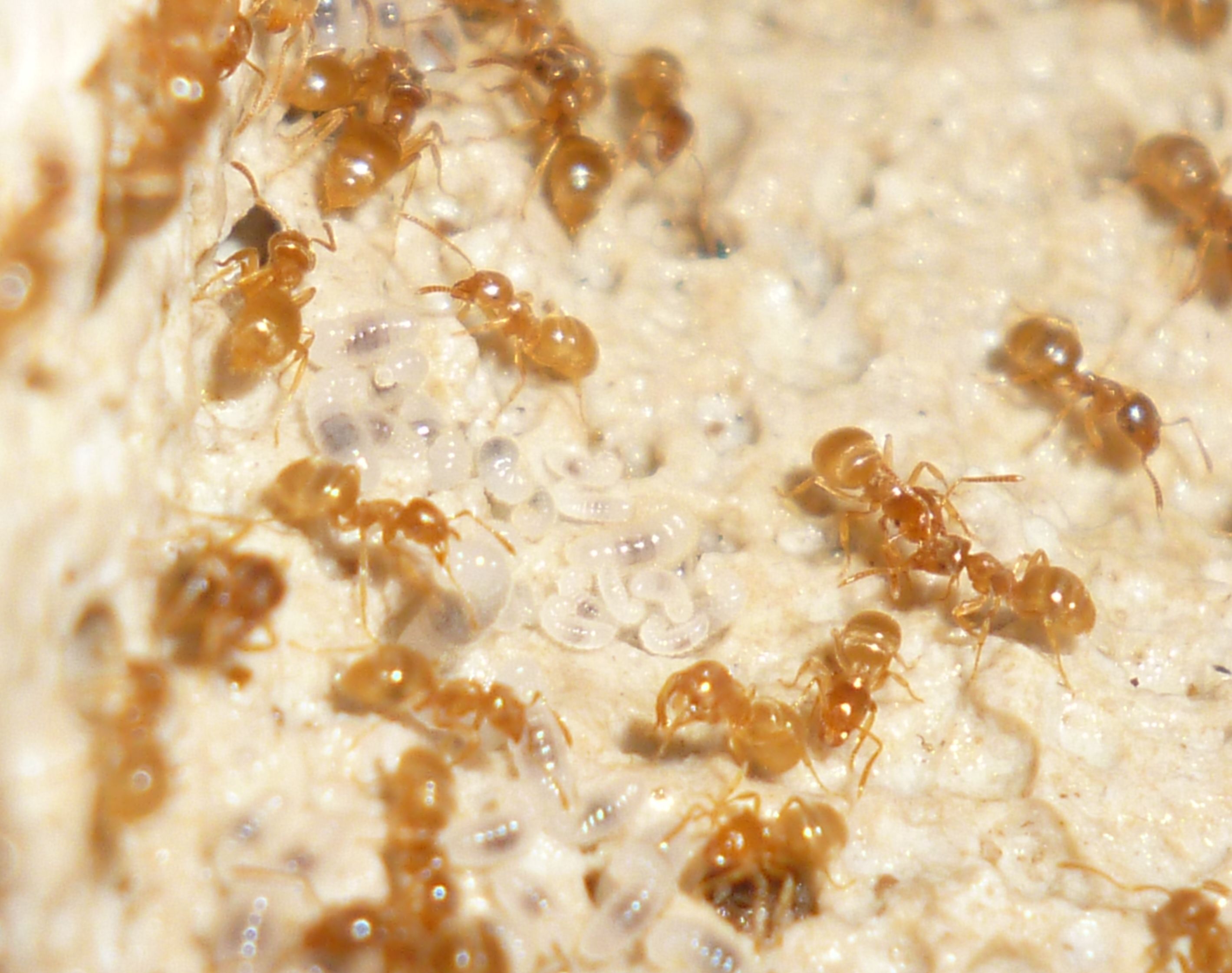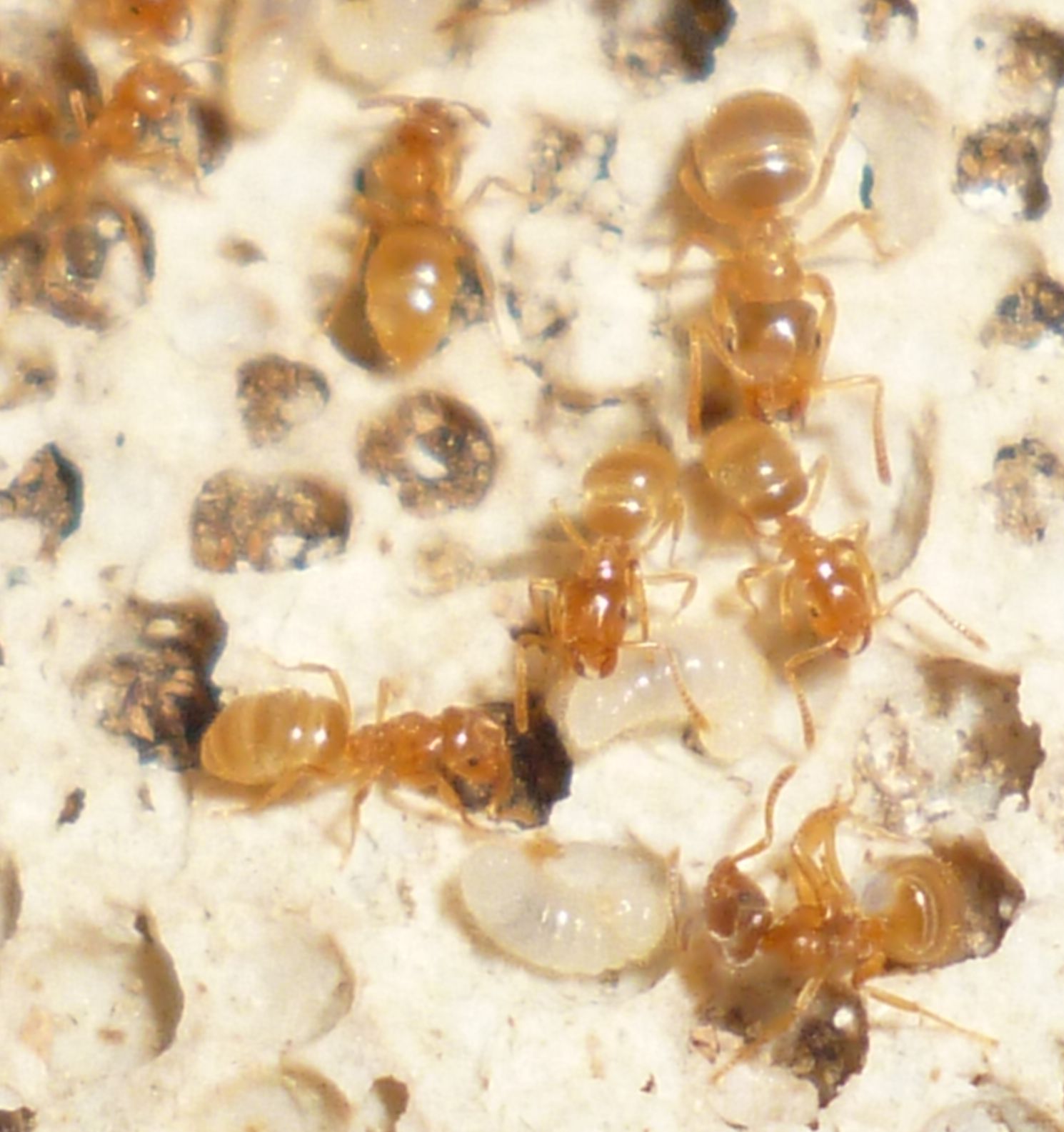 Es gab vor kurzem ein paar Tote bei der Fütterung mit Honig. Man muss bei Lasius flavus wirklich penibel darauf achten, nur winzig kleine Tropfen Honig anzubieten, sonst können sie sich nicht helfen und ertrinken darin .