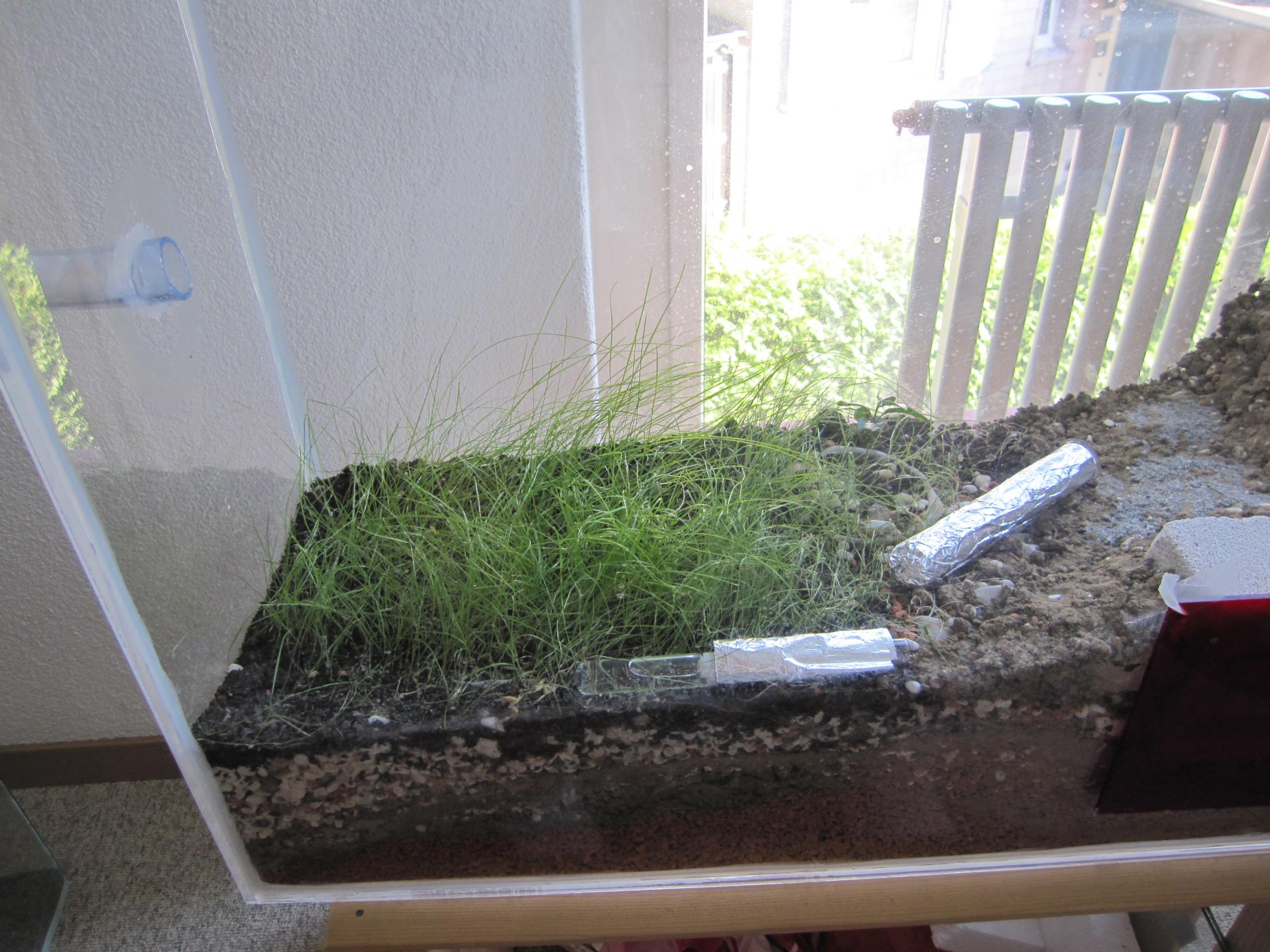Was mich aber noch stört ist, dass sie nun Dank dem vielen Gras sich besser verstecken können und man lange suchen muss bis man eine Arbeiterin ausfindig gemacht hat. Doch mit dem musste ich natürlich rechnen und so hoffe ich, dass wenn es mehr Arbeiterinnen gibt, auch das Aufspüren einfacher fällt.