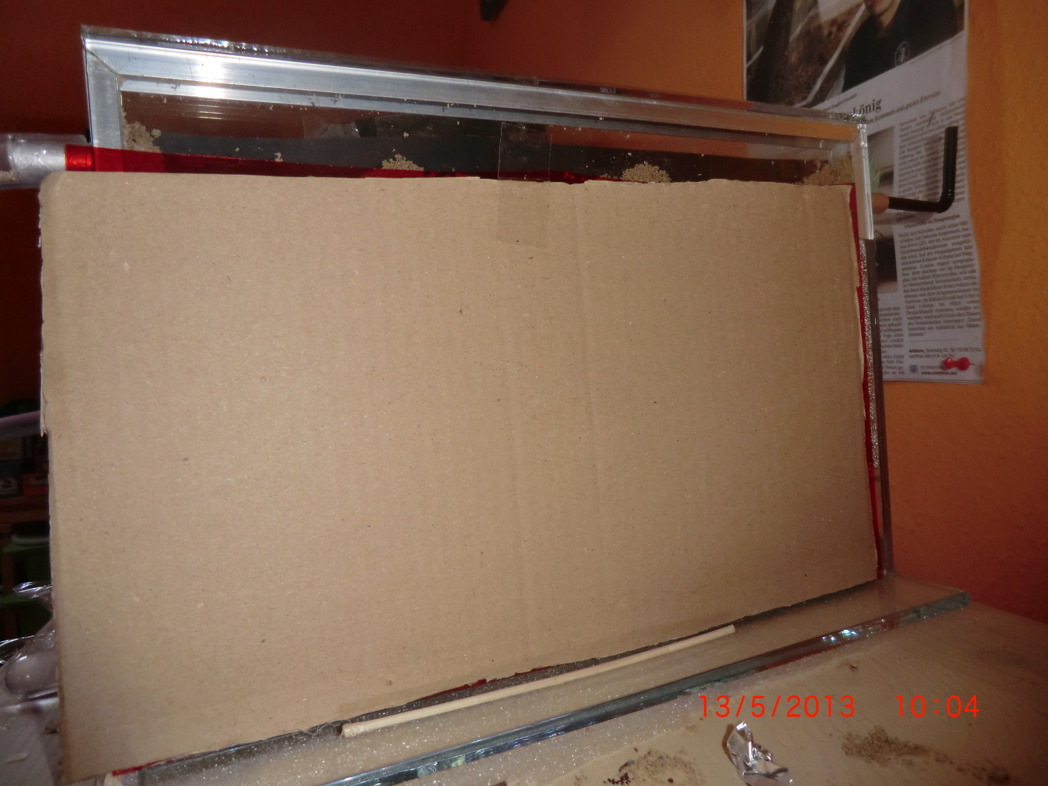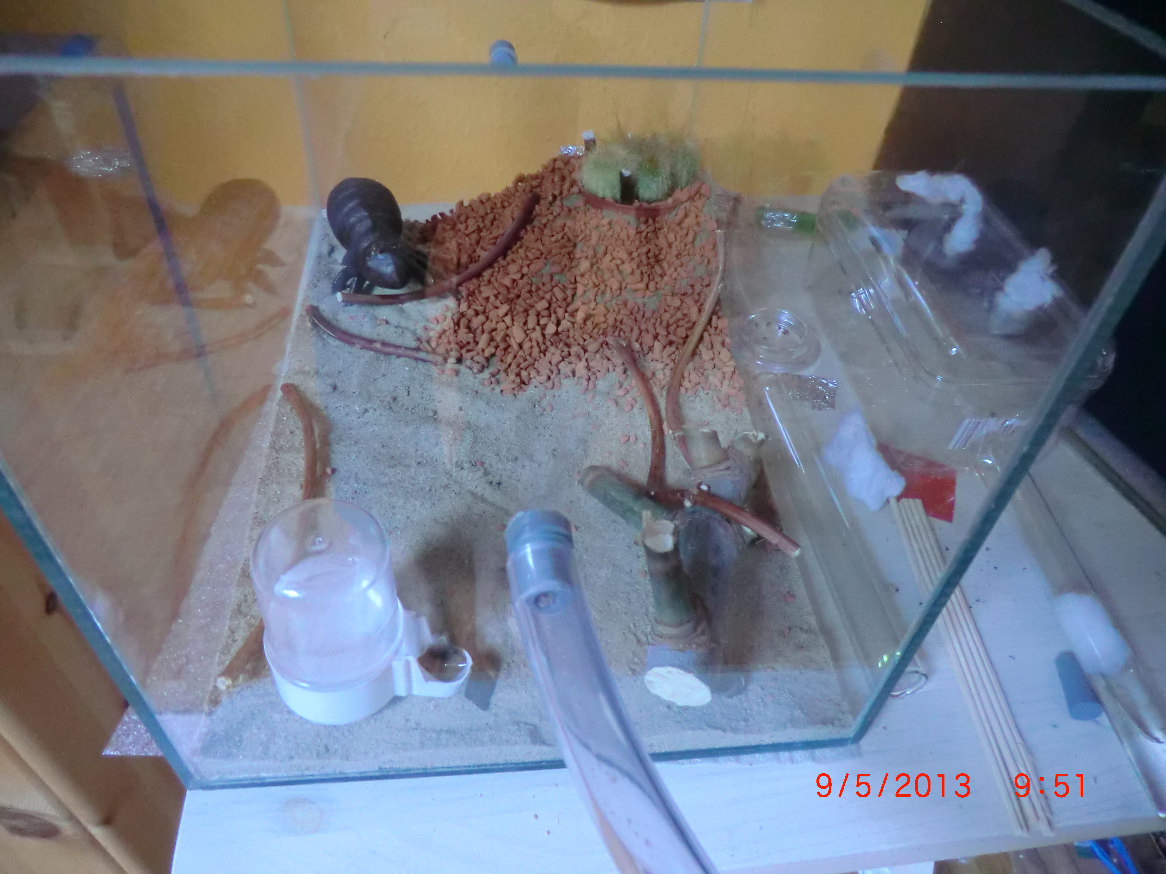 Da der Schlauch ja verschlossen ist (der zu Arena führt), weil ja die Sand-Lehmmischung trocknen muss, habe ich heute 2 kleine Fruchtfliegen im Schlauch angeboten. Sie wurden dankend angenommen. Wie lange dauert es denn ungefähr bis die Mischung in der Arena hart ist. Der Deckel ist geöffnet und wird immmer wieder am Tag kurz auf die Heizung gestellt. Hier bitte Antworten. Ansonsten danke für das lesen dieses Haltungsberichts.