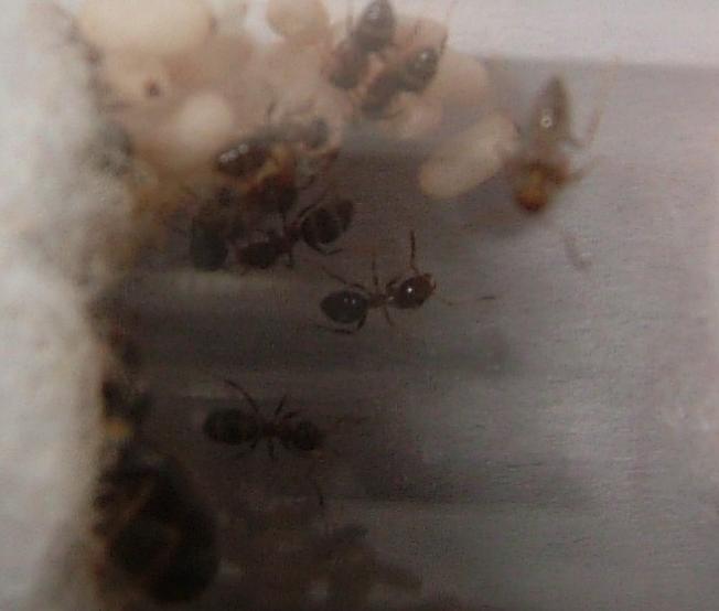 Ich werde mal bei gegebener Zeit mir die Arbeiterinnen mal genau anschauen und miteinander vergleichen, ob evtl. schon "richtige", große Arbeiterinnen darunter sind oder ob die Kolonie noch kplt. aus Pygmäen besteht.