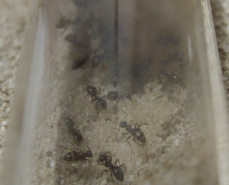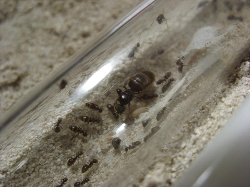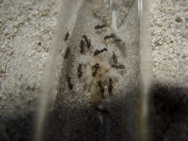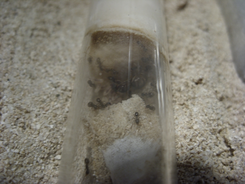 Prinzipiell geht es den Ameisen gut. Tote Tiere habe ich keine gesehen, heute als ich ins Nest geschaut habe sind sie ein wenig erschrocken herumgewuselt (also an sich noch aktiv). Die tote Schnake die ich heute hineingelegt habe versuchen sie auch schon ins Nest zu kriegen (klappt aber irgendwie nicht wie sie es planen ^^ ).