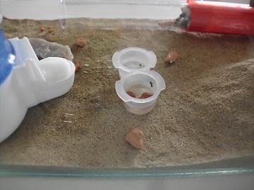 Die Nestentwürfe haben sich weiterentwickelt, doch ich scheitere inzwischen an einem geeigneten Material. Gals, Gips, Plastik, Ton, ...? Wie ihr wisst, muss das Nest eine "Wanne" haben, die mit Erde befüllt werden kann, damit meine Kolonie graben kann. Mal sehen, wie sich die weitere Entwicklung ergibt.
