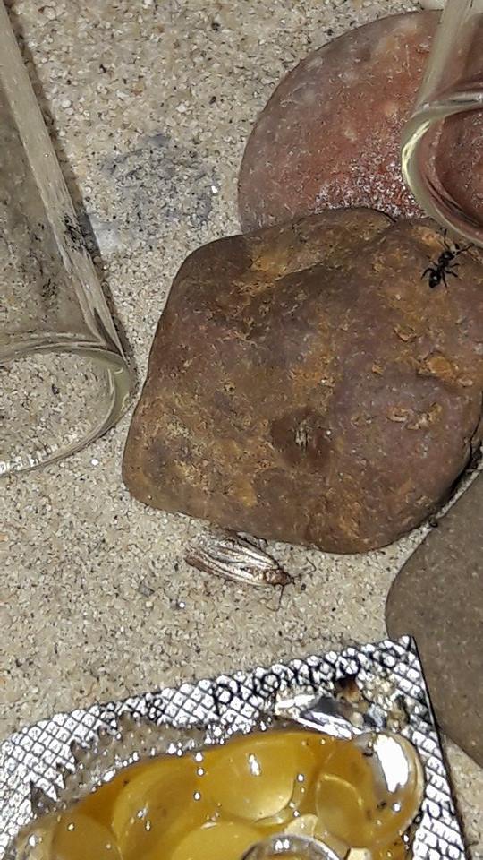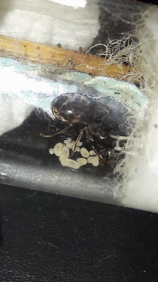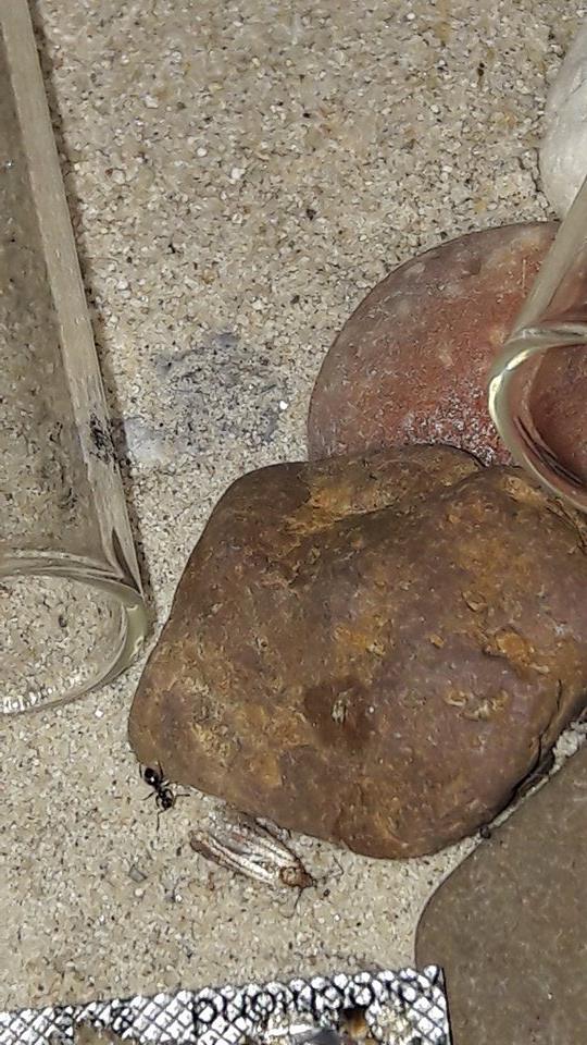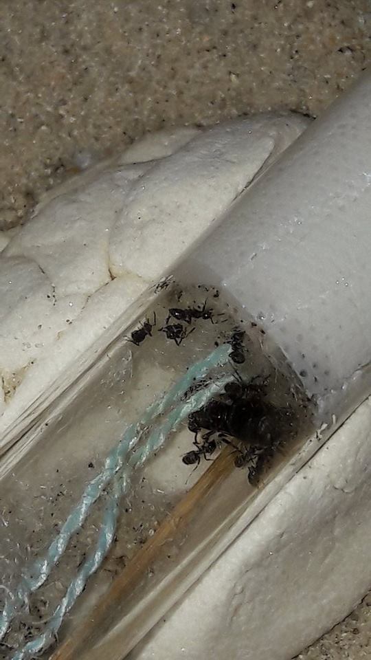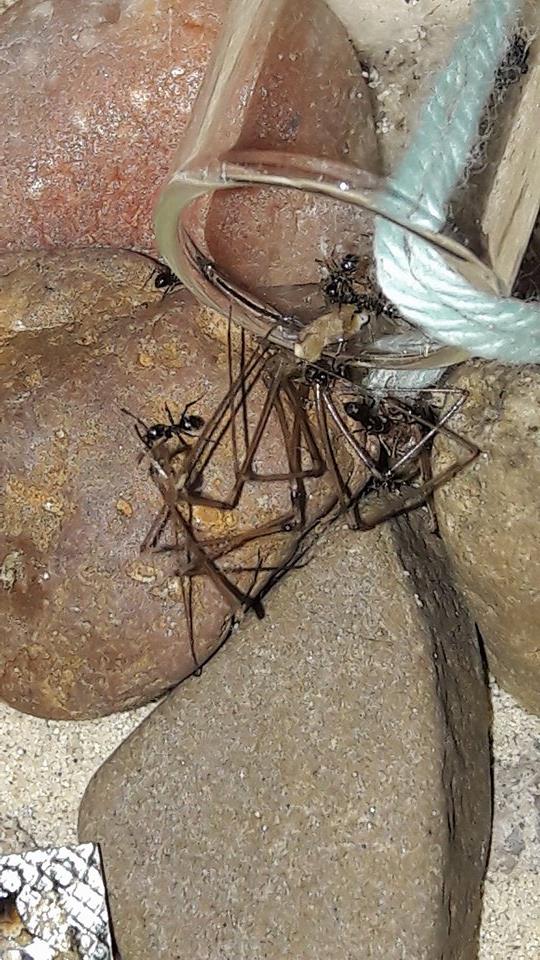 Habe beiden Völkern gestern je eine ausgewachsene männliche Zitterspinne angeboten, die gut angenommen wurde. Mal ne nette Abwechslung gewesen, nach den Dörrobstmotten, diversen Mücken und dem selten angebotenen Zahnstocher mit Hundefutter-Resten (was sie auch gut annehmen)!
