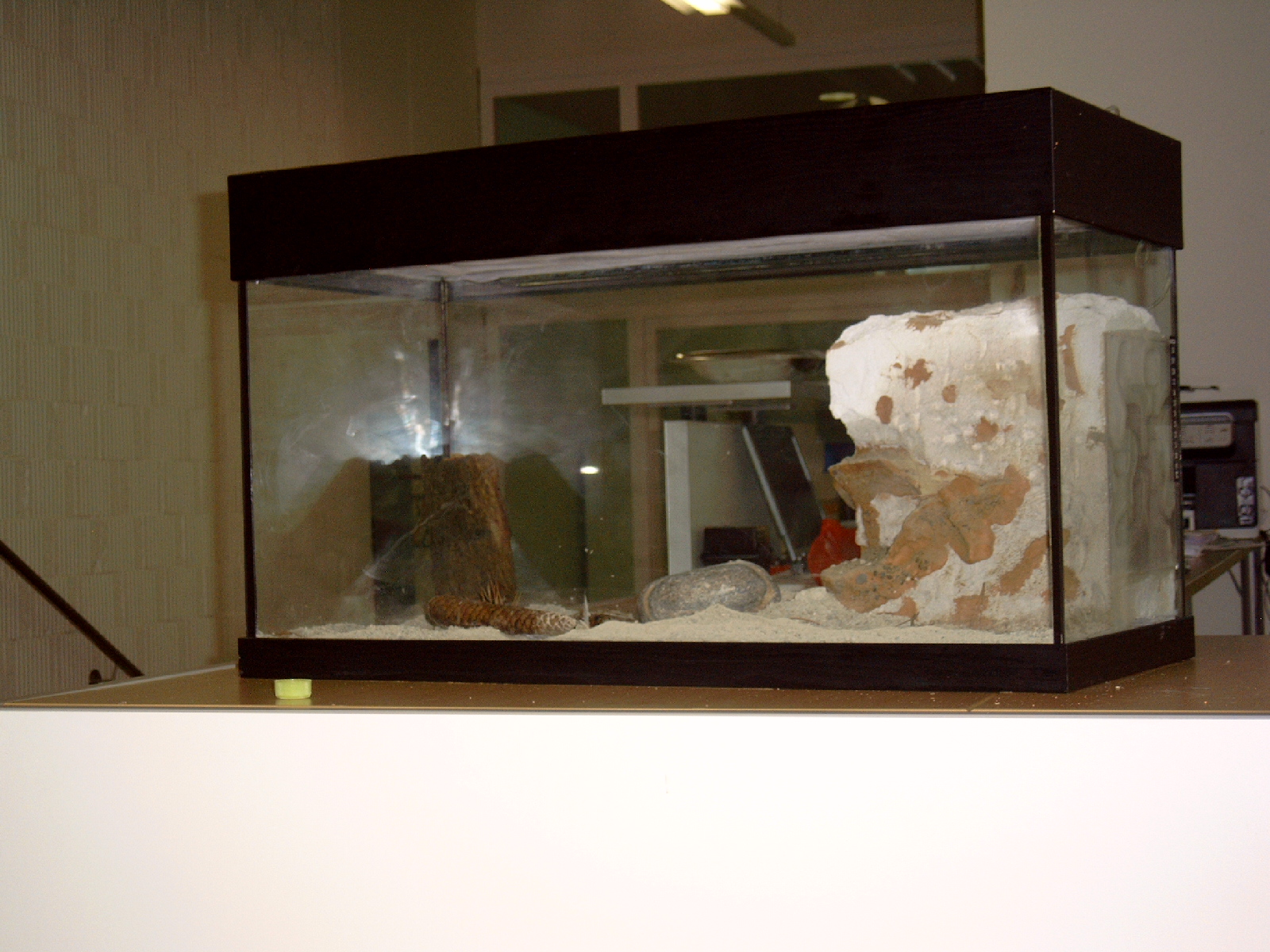 Nest und Boden im Aquarium eingebaut und Deckel ausbruchssicher gemacht.