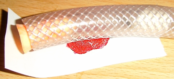 Etwas Wasser in den Schlauch, heißklebepistole, unter kaltes laufendes Wasser gehalten, fertig.