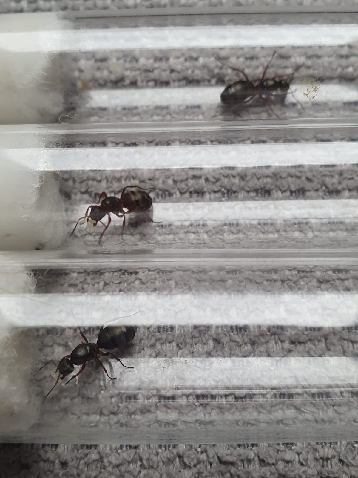 Königinnen direkt ein Reagenzglas mit Wasserzufur zur Verfügung gestellt (Alle natürlich aufgeteilt). Hier ist ein kleines Foto von einer der 3