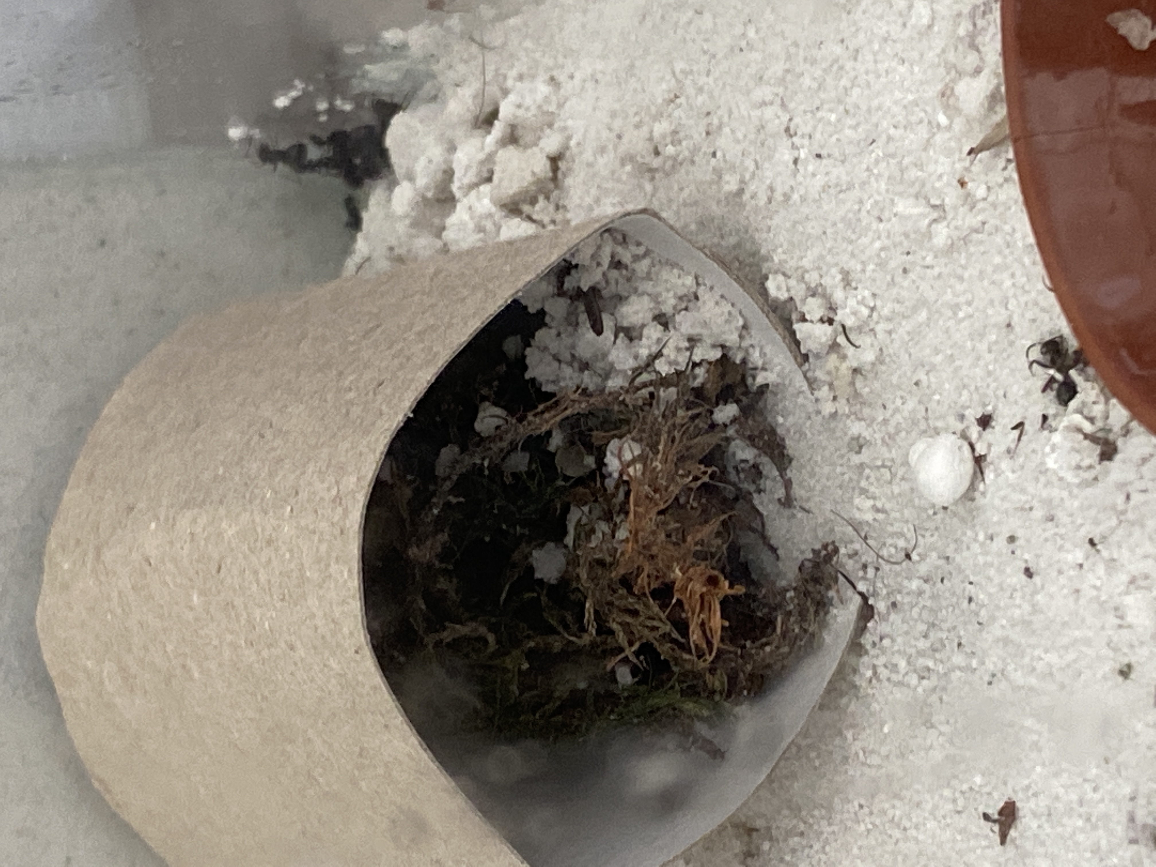 Vor einem Monat musste ich sie aus dem Reagenzglas schaffen, da sich dort Schimmel bildete. Die Ameisen leben nun mit ihrem Moss, welches im RG war, in einer Toilettenpapierrolle. Sie akzeptieren es.
