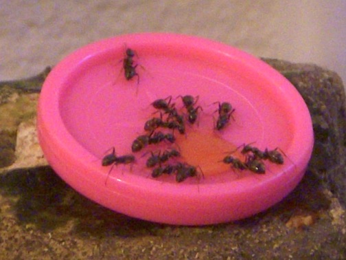 Circa Einmal in der Woche besuche ich die Ameisen und befeuchte