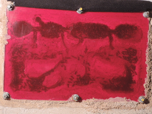 Die rote Folie wird mit Magneten an der Scheibe gehalten.
