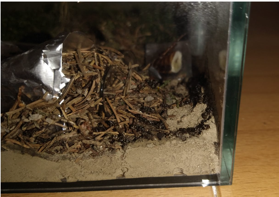 Zudem scheinen die ersten Raptiformica sanguinea Arbeiterinnen nicht mehr lange auf sich warten zu lassen. Heute habe ich im zweiten RG (auch wenn ich mich frage, warum denn da und nicht im eigentlichen Nest-RG) zwei