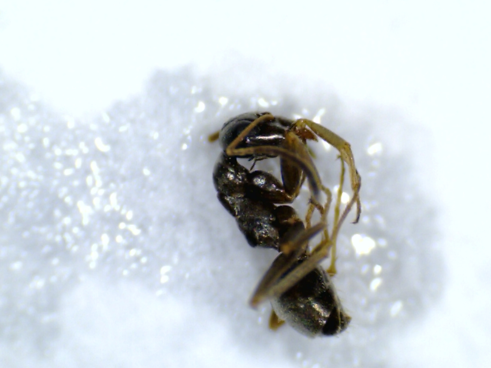 Es sind ja schon mehrere PygmĂ€en gestorben, aber gestern wurde es seltsam. Einige Arbeiterinnen liefen wie besoffen im Reagenzglas umher. Sie fielen auf den RĂŒcken und zappelten rum.