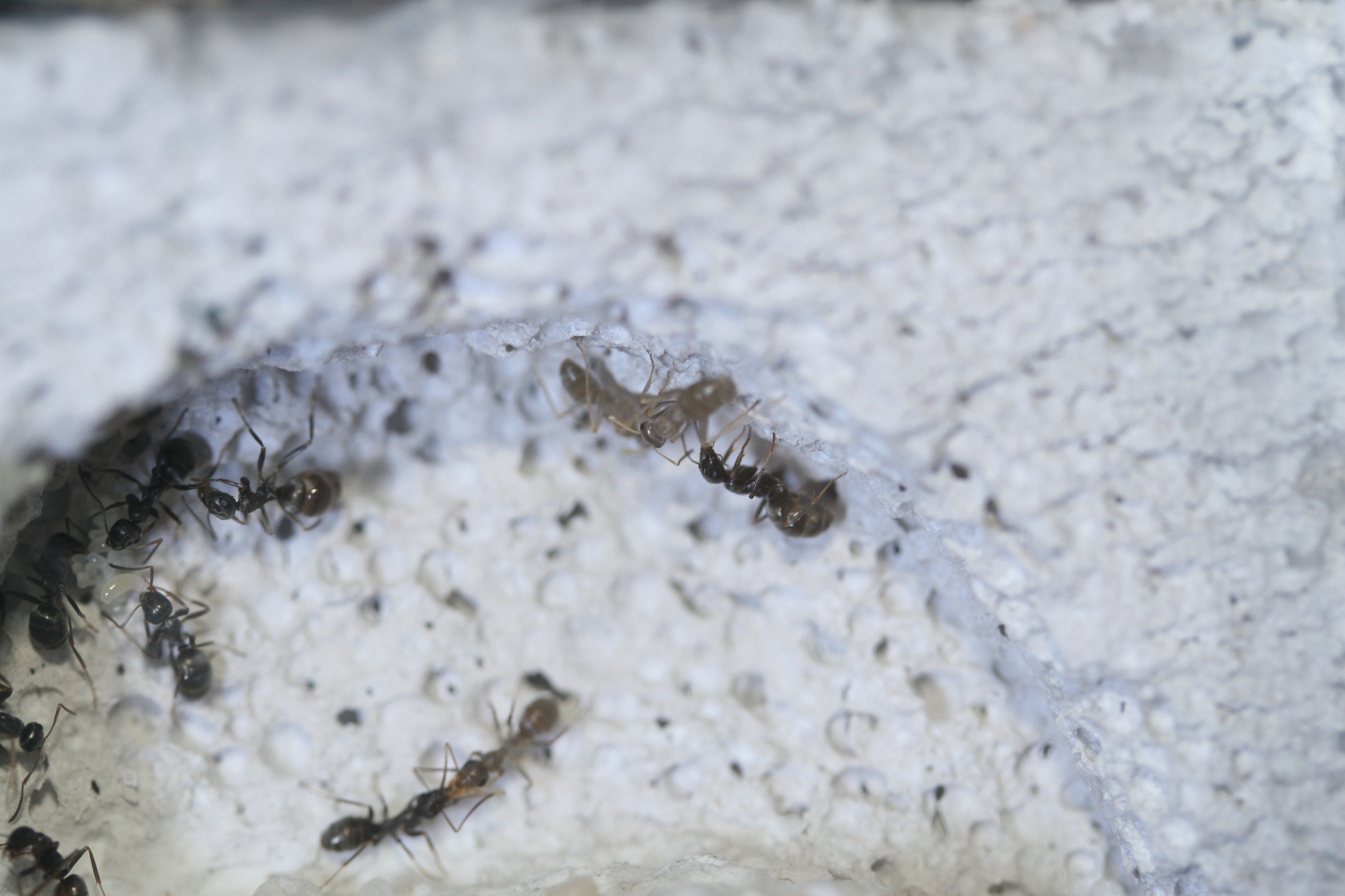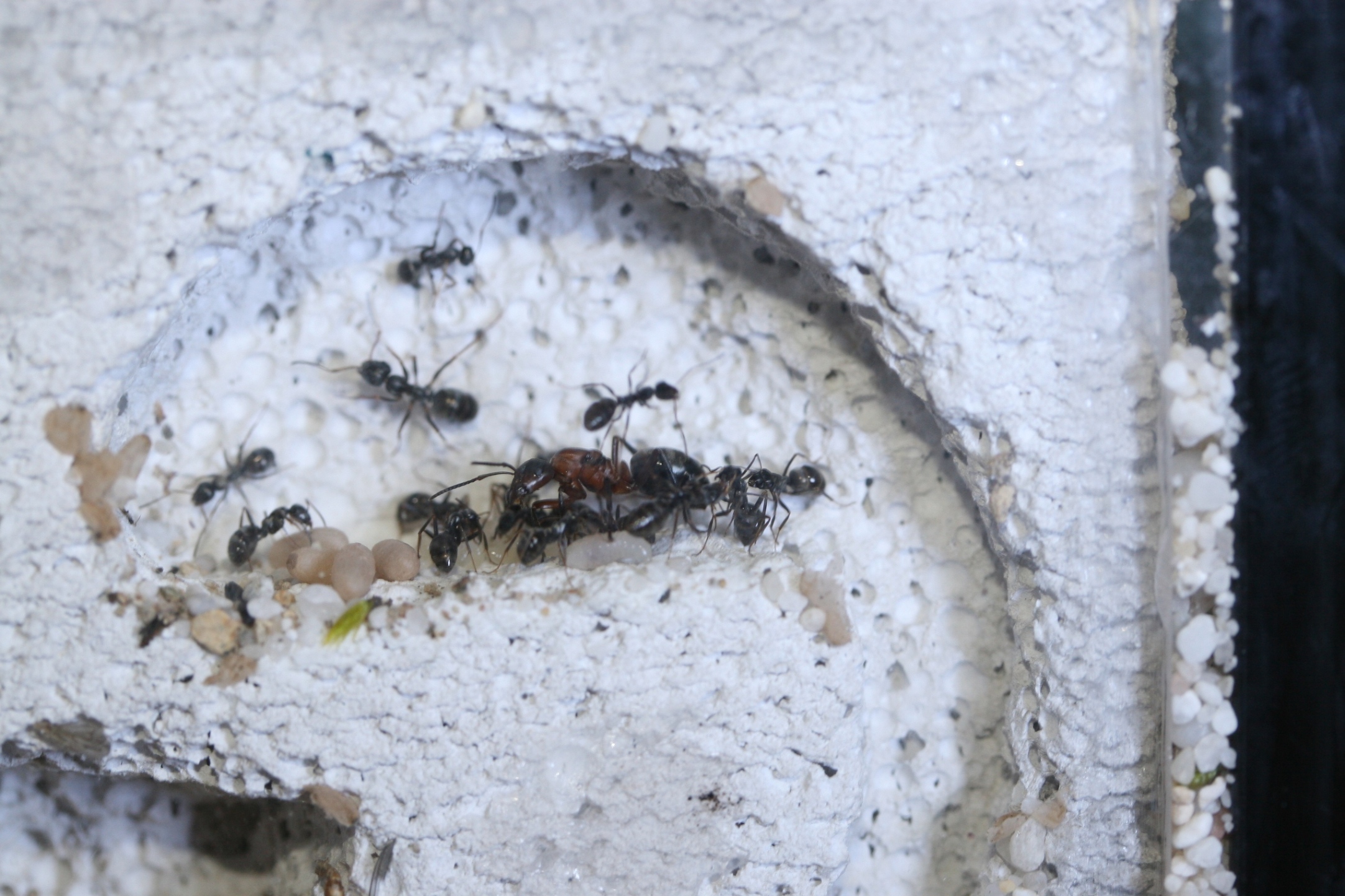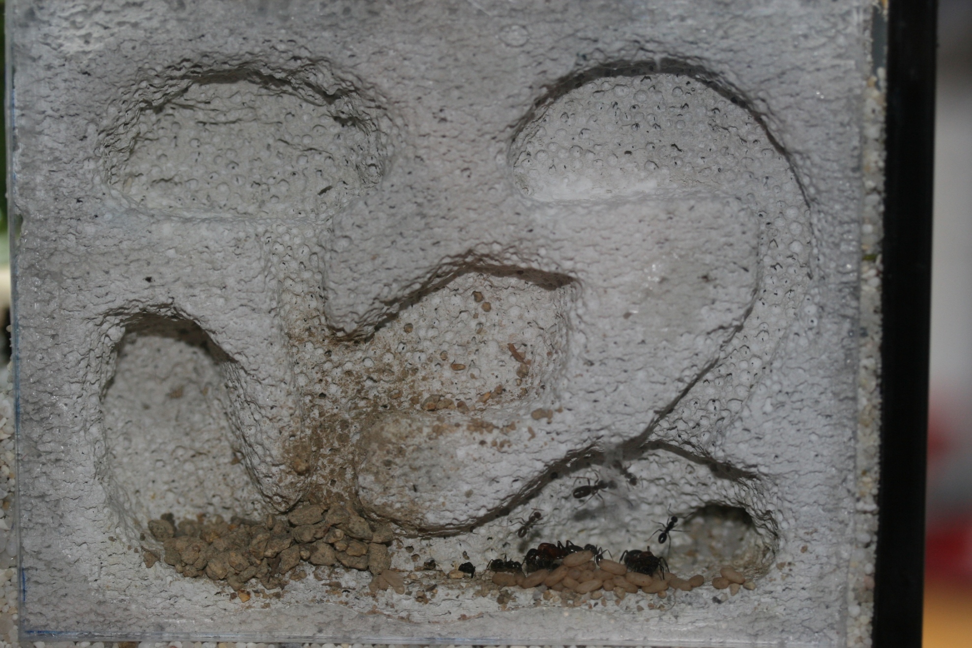 Nach dem Umzug hab ich die Ytongs wieder getrennt und den Ausgang des Neuen mit Watte verschlossen und wieder ins Formicarium gestellt.