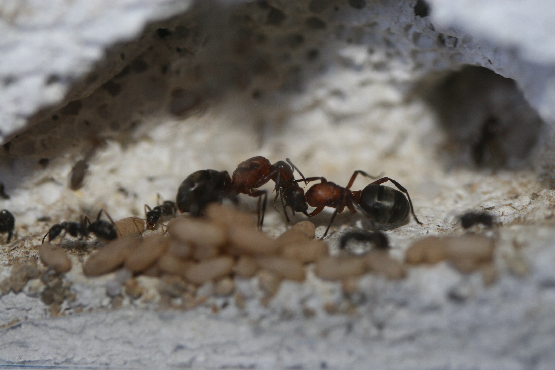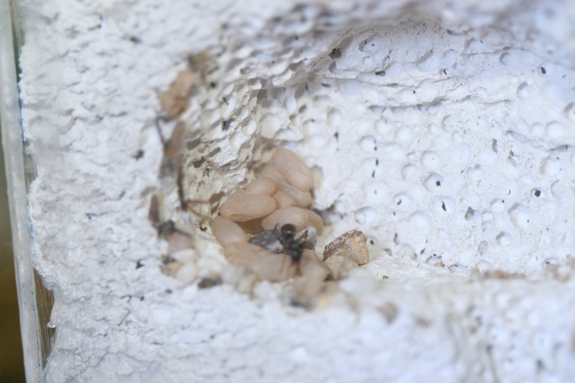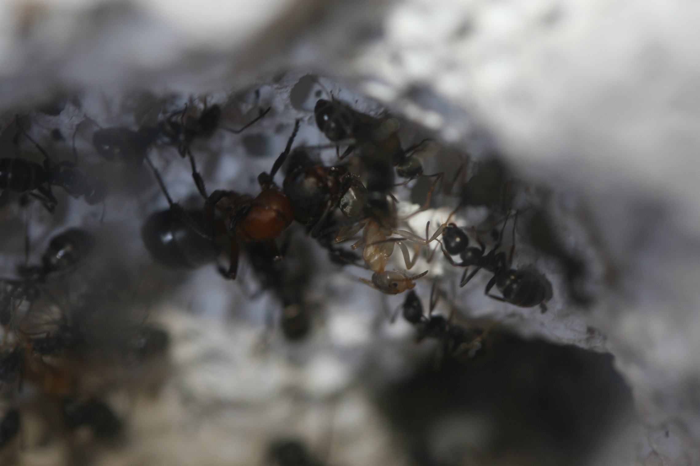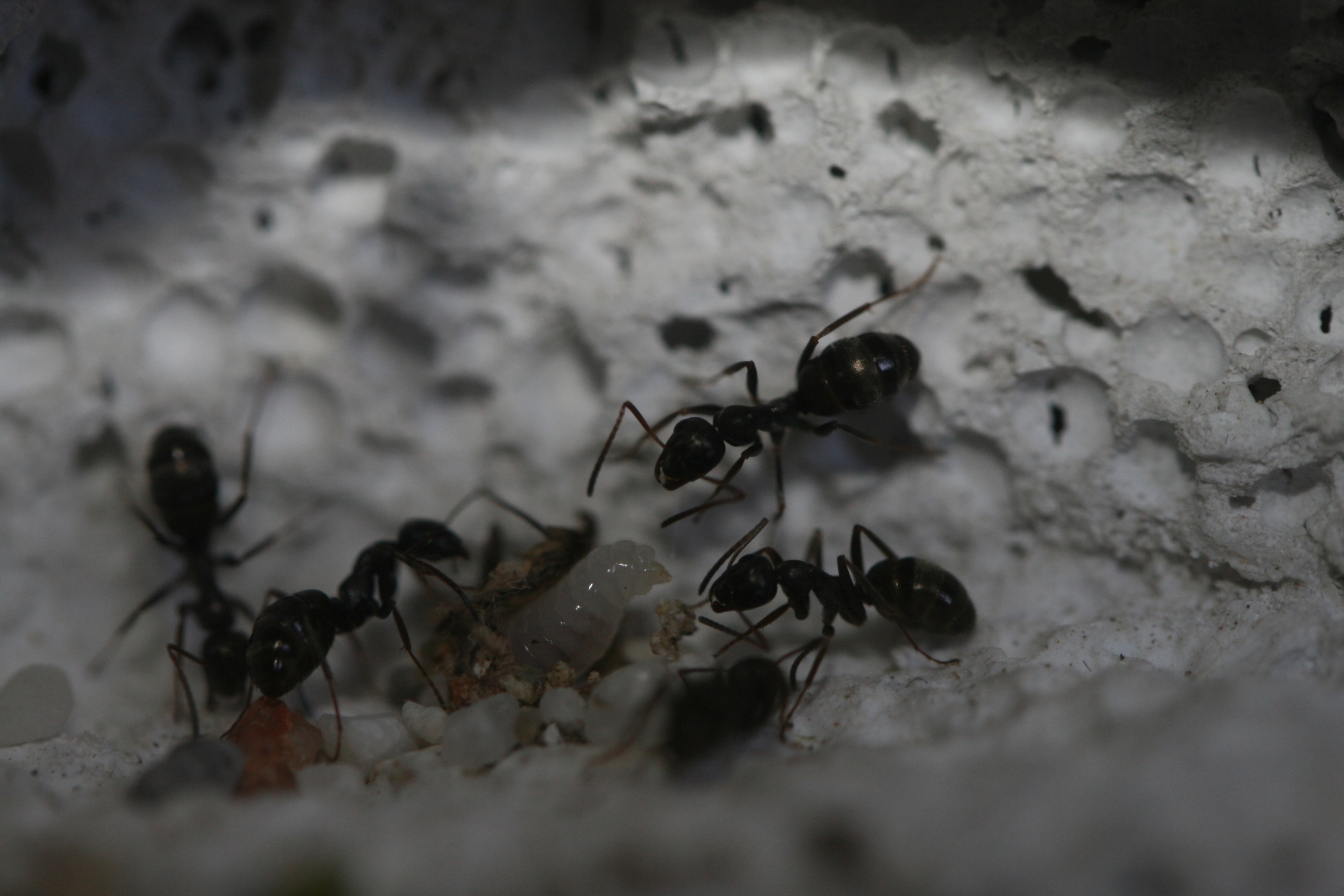 Außerdem hatte ich mich dann doch dazu entschlossen sie in einen kleineren Ytong umziehen zu lassen, da sie die leeren Geschlechtstierpuppen nicht mehr abtransportierten. Die waren mittlerweile durch den Schimmel mehr oder weniger zusammengewachsen.