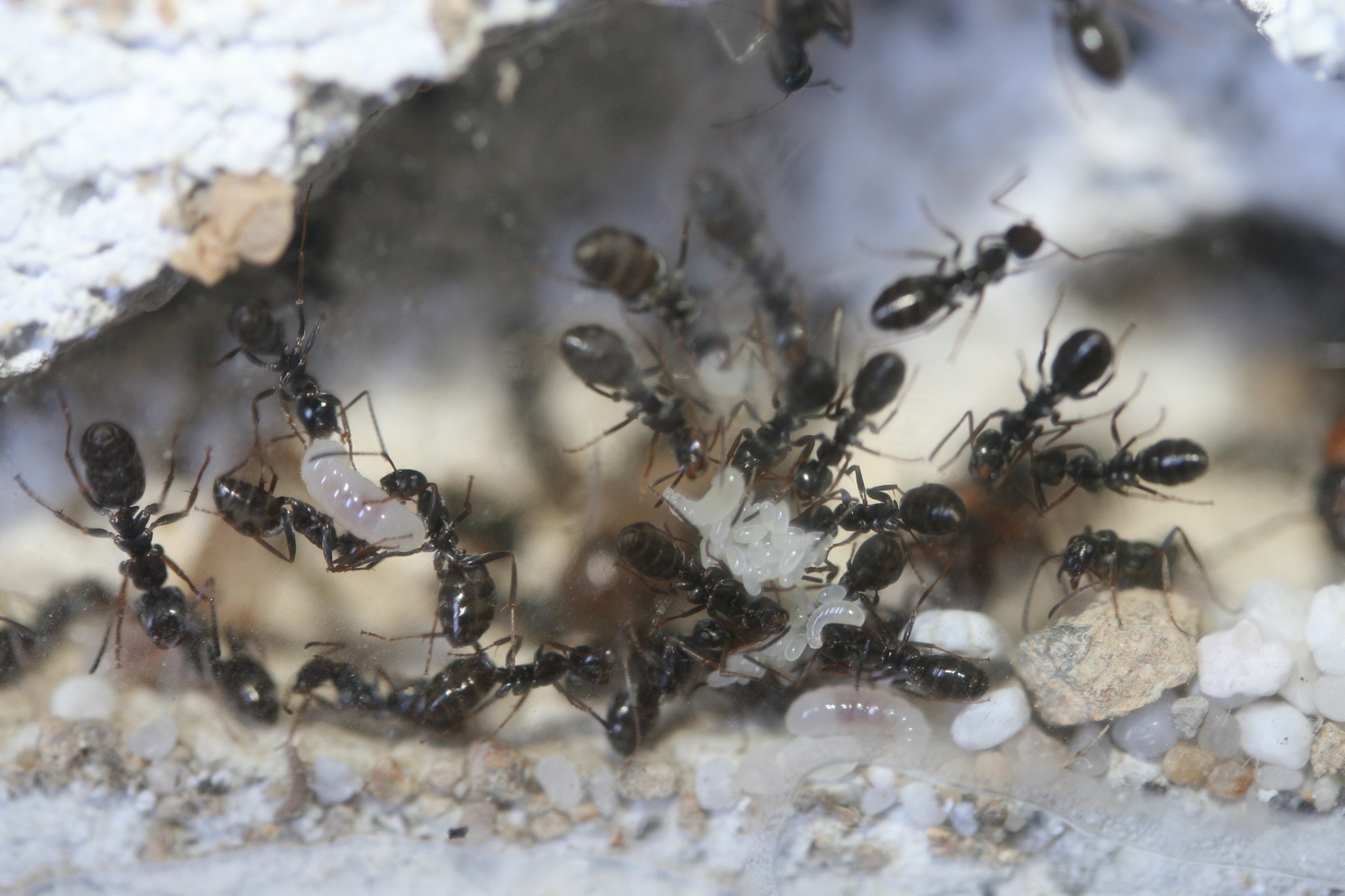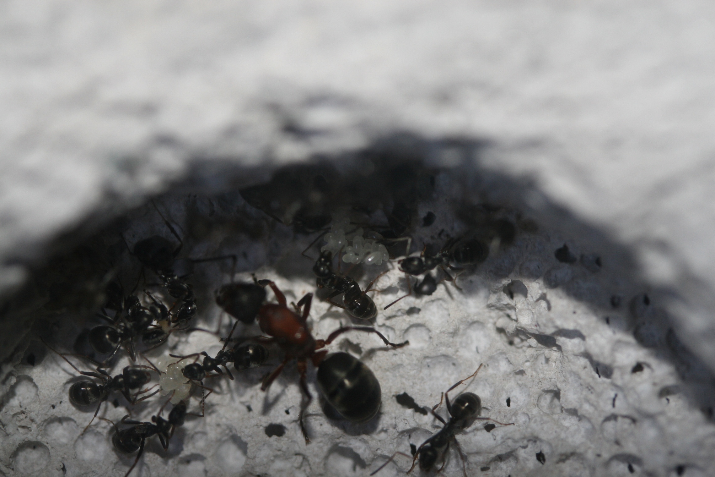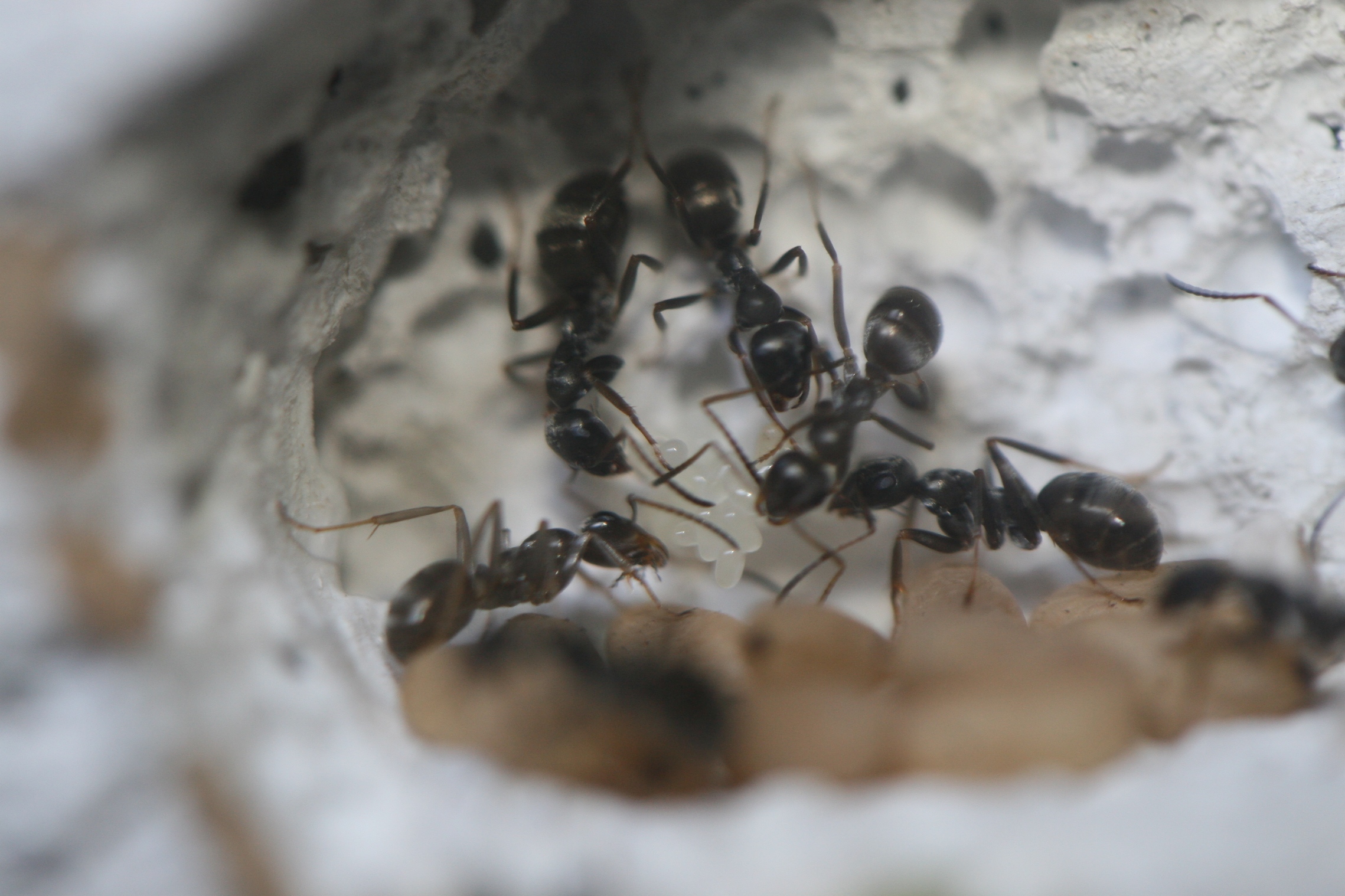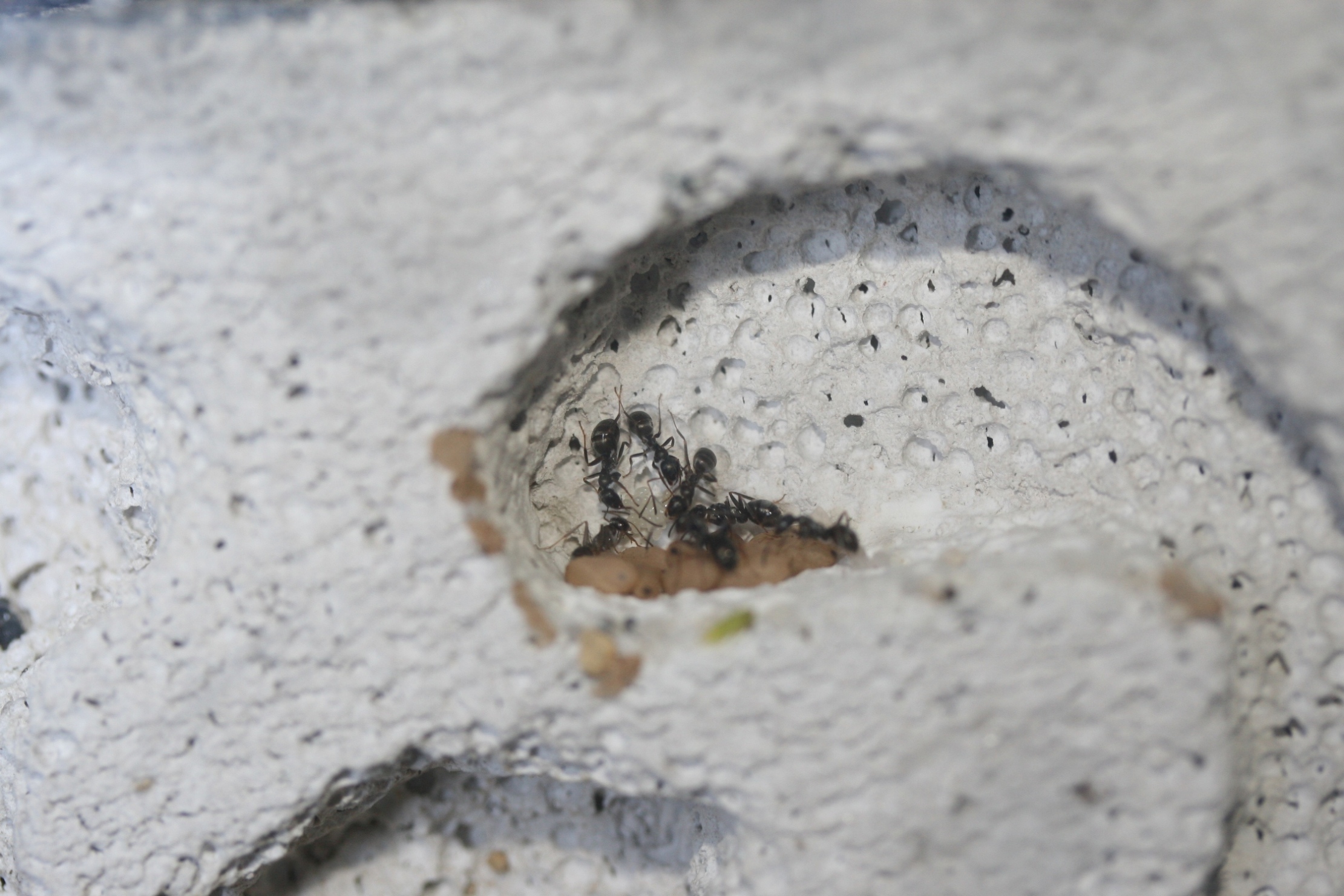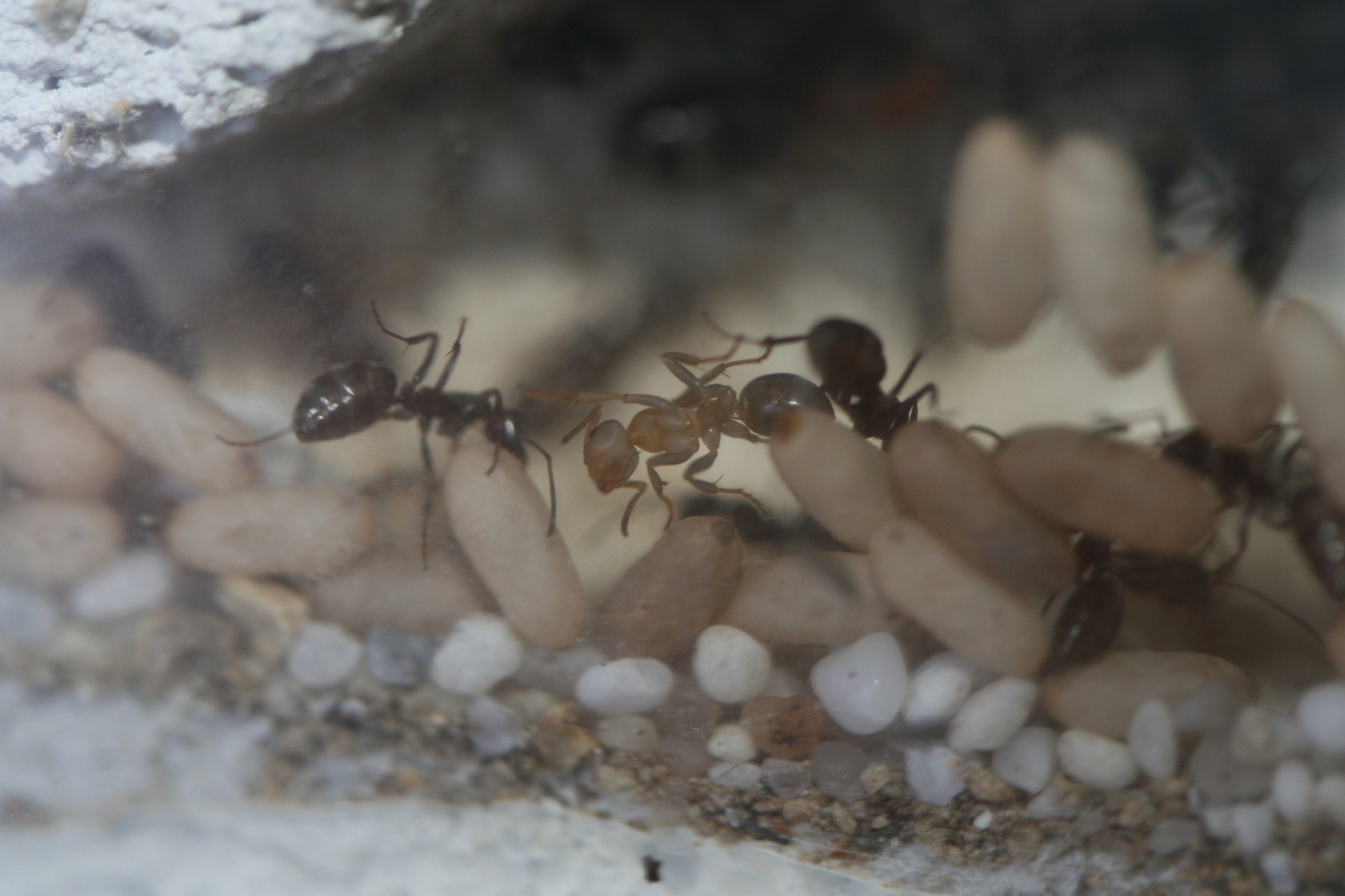 Außerdem hatte ich mich dann doch dazu entschlossen sie in einen kleineren Ytong umziehen zu lassen, da sie die leeren Geschlechtstierpuppen nicht mehr abtransportierten. Die waren mittlerweile durch den Schimmel mehr oder weniger zusammengewachsen.