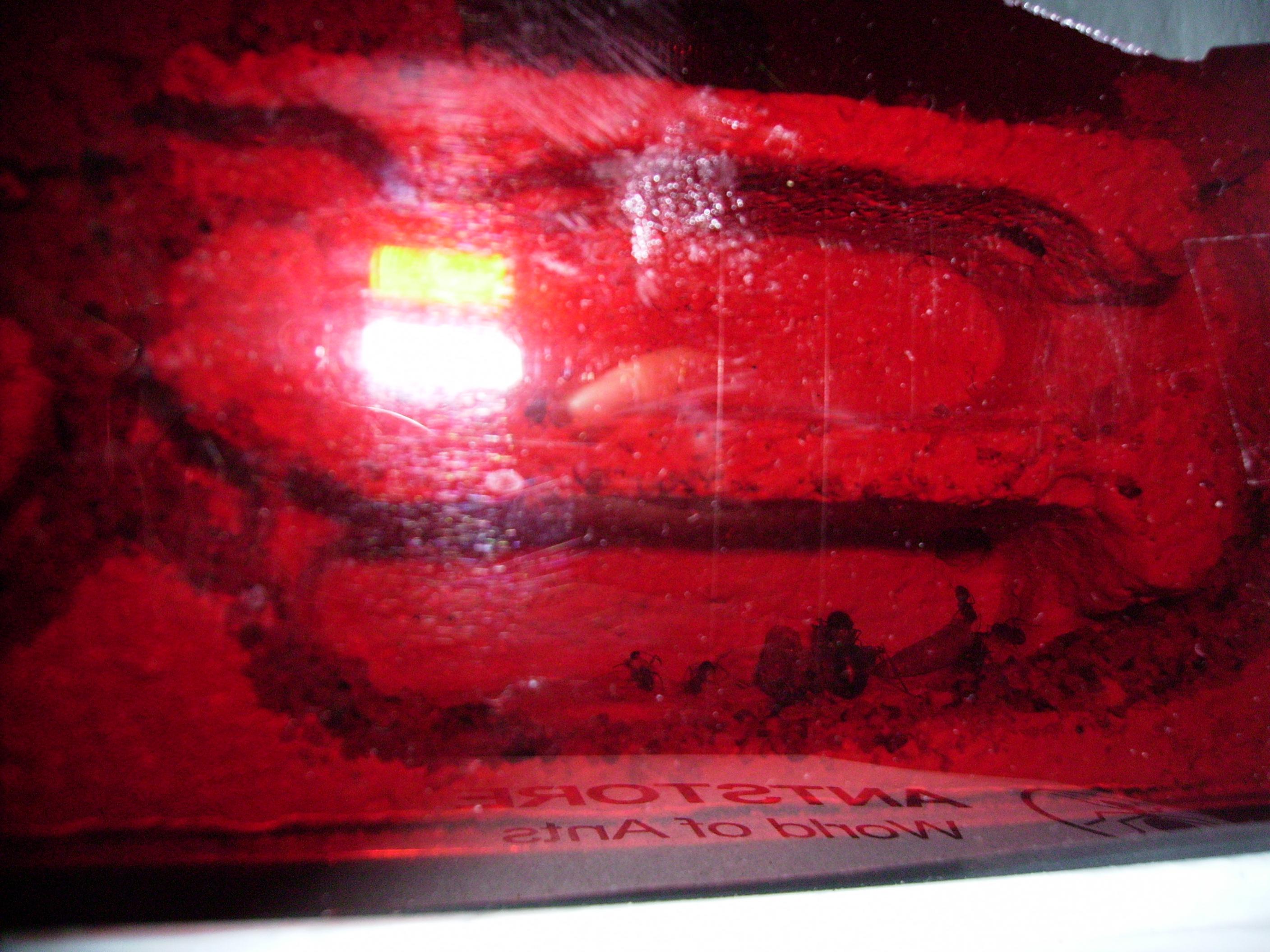 Die Arbeiterinnen haben die Mehlwurmteile in das Nest geschleppt und die Nesteingänge verschlossen - Sie bedienen sich nun an der Delikatesse