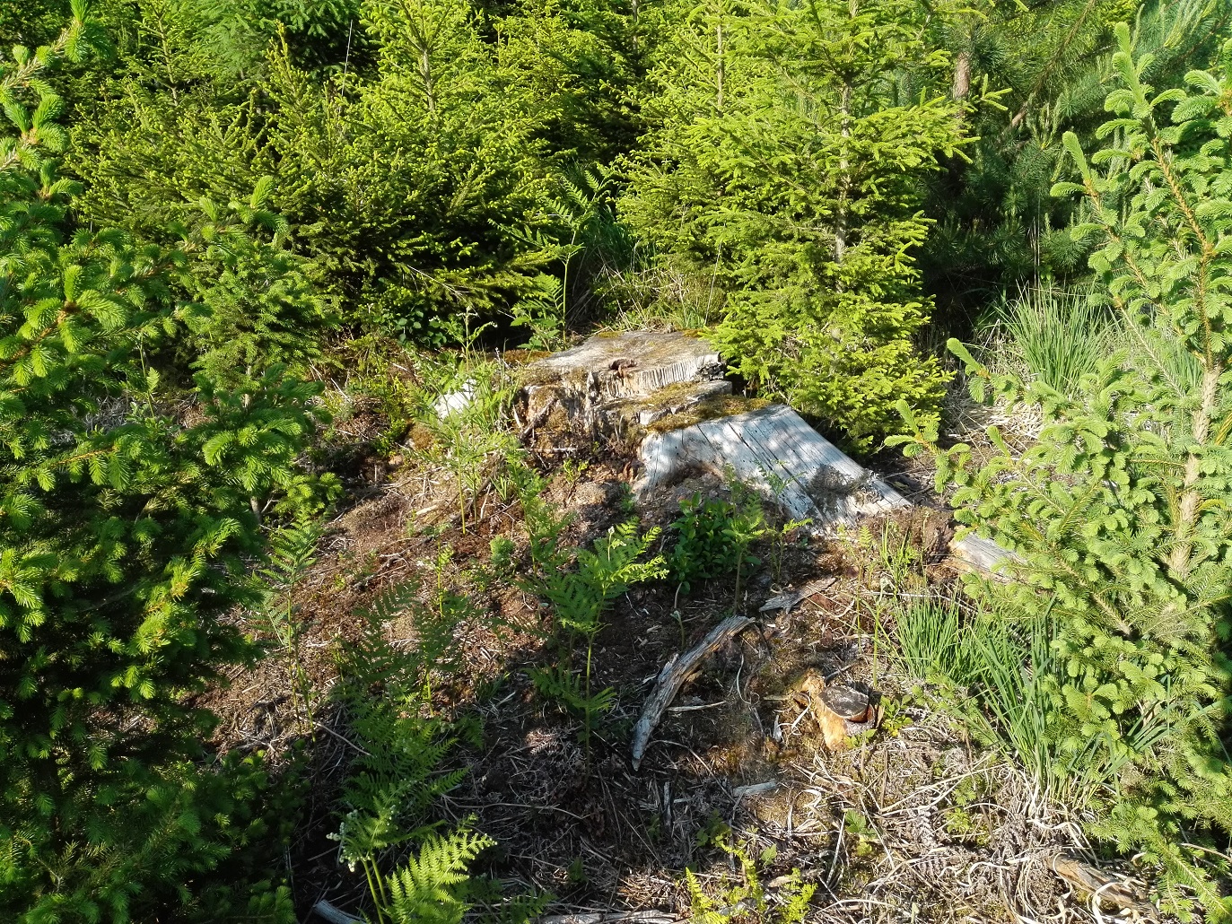 Hier befinde ich mich etwa 80 Meter entfernt auf einer halbsonnigen Lichtung. Dieser Baum wurde wohl vor 4 - 7 Jahren gefällt. Der verbliebene Strunk erscheint mir günstig, da sich noch keine andere Ameisenkolonie angesiedelt hat und andere Strünke etwas entfernt liegen. Das erscheint mir wichtig, da in diesem Wald ca. jeder dritte Strunk eine kräftige Formicakolonie aufweist. (Mischung aus Serviformica, Raptiformica und F.sensu stricto) Eine solch hohe Besatzdichte fand ich bisher in keinem anderen Wald im Umkreis der Gemeinde.