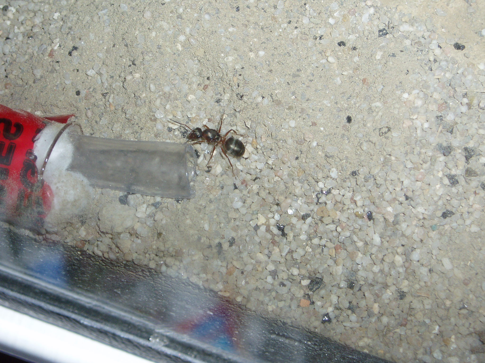 Brut in alles Stadien vorhanden ca. alle 1-2 Wochen schlüpft ein neuer Trupp von ca. 5-10 Arbeiterinnen. Die Gesamtzahl schätz ich auf 40-50, das Reagenzglas, in dem sie immernoch wohnen, ist am Boden und den Seitenwänden fast vollständig bedeckt. Das Wasser ist längst vertrocknet und die Watte ist zu einem undeutbaren schwarzen Klumpen zusammengeschrummpelt. Das schwarze hielt ich zuerst für Schimmel. Dieser "Schimmel" hat aber schon vor der