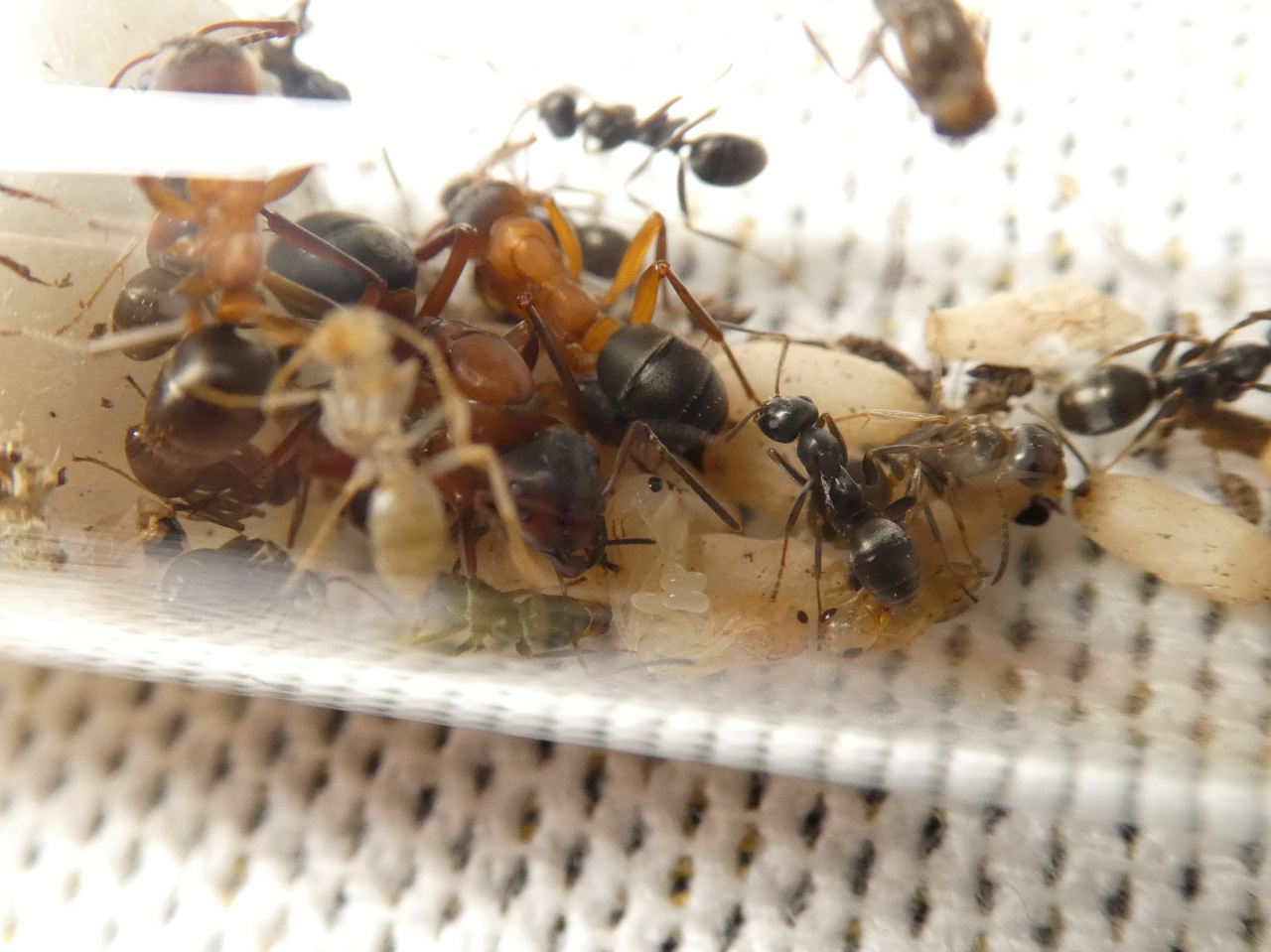 Inzwischen sind jeweils eine Raptiformica & eine Serviformica-Arbeiterin geschlüpft und soweit vertragen sich alle gut.