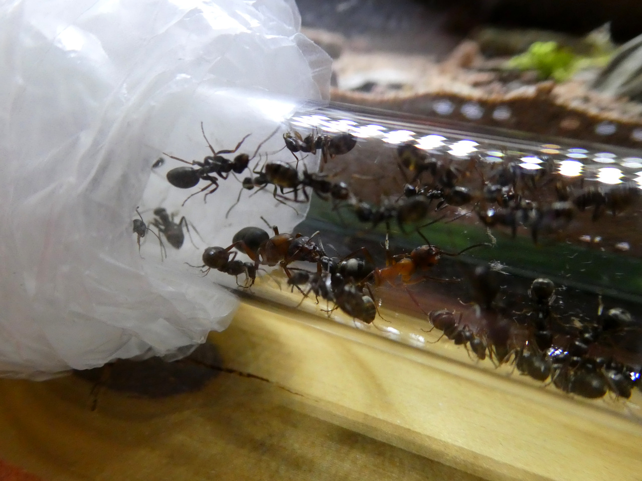 Umständlich, aber in diesem Fall ging es nicht anders, da die Serviformica sehr neugierig sind oder womöglich das Sklavenverhältnis beenden möchten.
