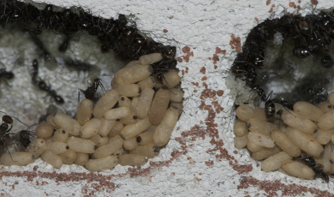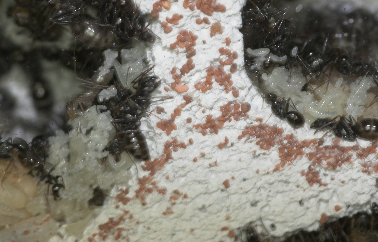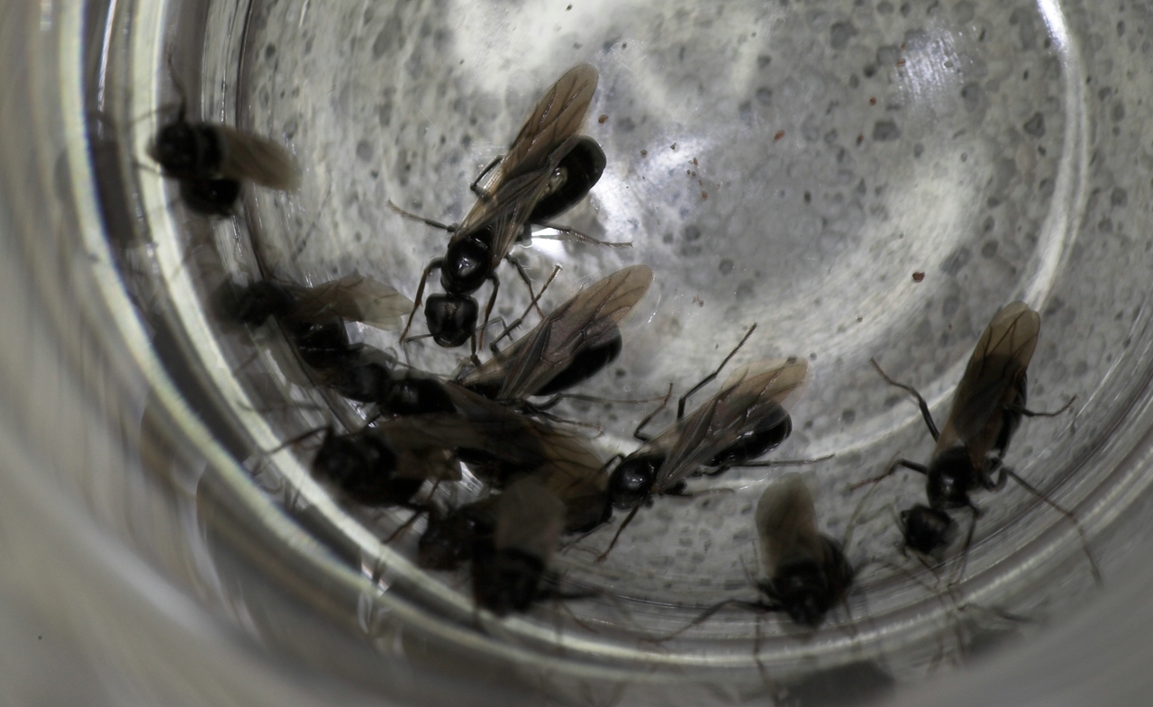 Königinnen waren draußen und liefen wie wild im großen Becken umher, bewacht von ca. 150 Ameisen die ebenfalls sehr aufgeregt wirkten. Was für ein Anblick sag ich euch. So ein misst das ich keine Video Kamera zu hause hatte!