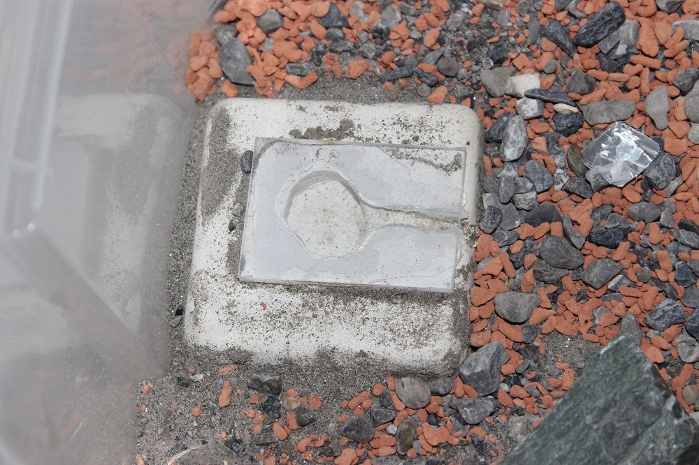 Zuhause angelangt versorgten wir die beiden Jungköniginnen vorerst in zwei Tupperwareboxen. Sie bekamen ein Reagenzglas mit Wassertank und ein Häufchen feuchtes Seramis in ihre Box. Zusätzlich natürlich reichlich Zuckerwasser und Wasser. Erne erklärte dann, dass Manica rubida Reagenzgläser nicht besonders mögen. Das stellten wir am nächsten Tag auch fest. Beide saßen in ihrem Seramishaufen und mieden das Reagenzglas. Wir besorgten dann zwei Plastikboxen mit den Maßen 26x19x14 und bastelten zwei Gipsnester nach Ernes Anleitung. Als Bodengrund bekamen sie Flußkiesel mit Sand und Seramis vermischt.