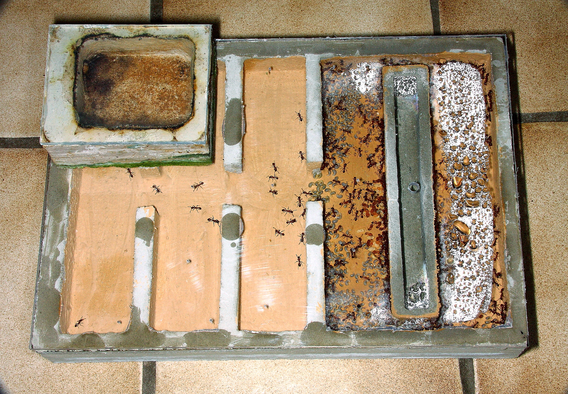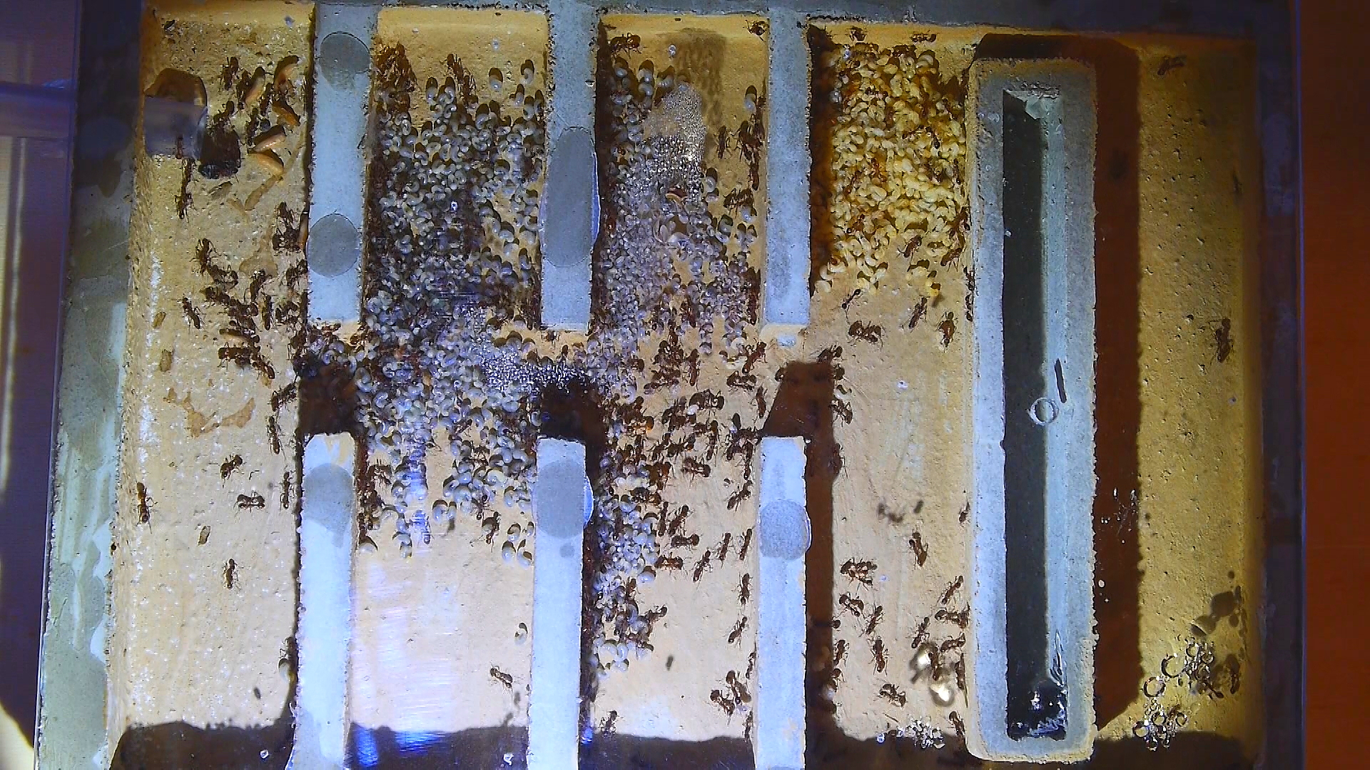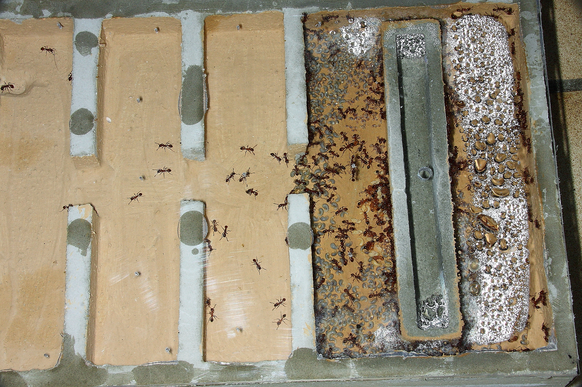 Rechts ist der Wassertank, den ich bald mal wieder füllen muss, diese Ameisen lieben feuchtere Nestbereiche.