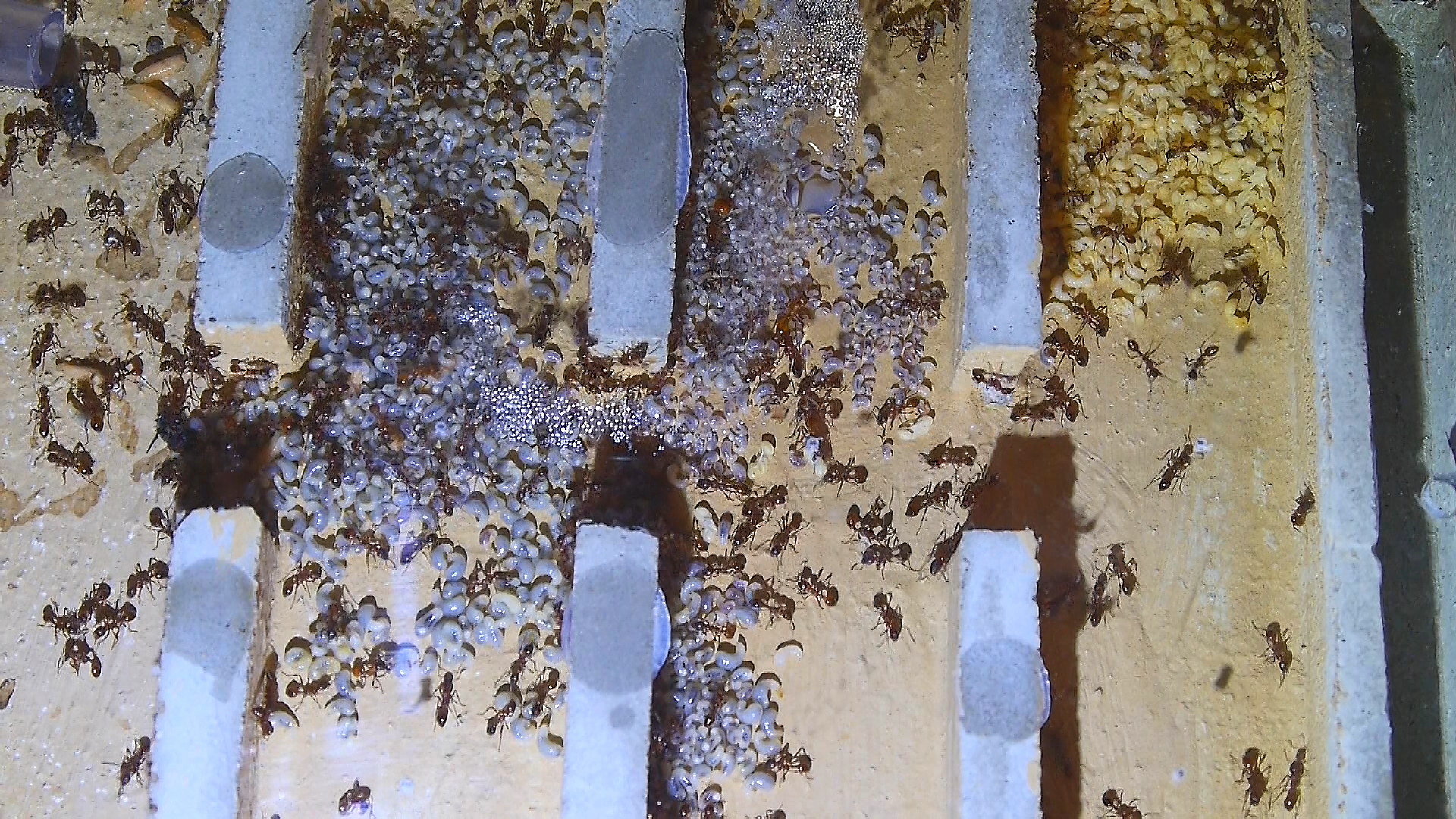 Eine für mich andere Überlegung, in der Haltung geht es diesen Ameisen derart gut, dass ihre Königinnen Unmengen an Eiern legen, was diesen nicht bekommt.