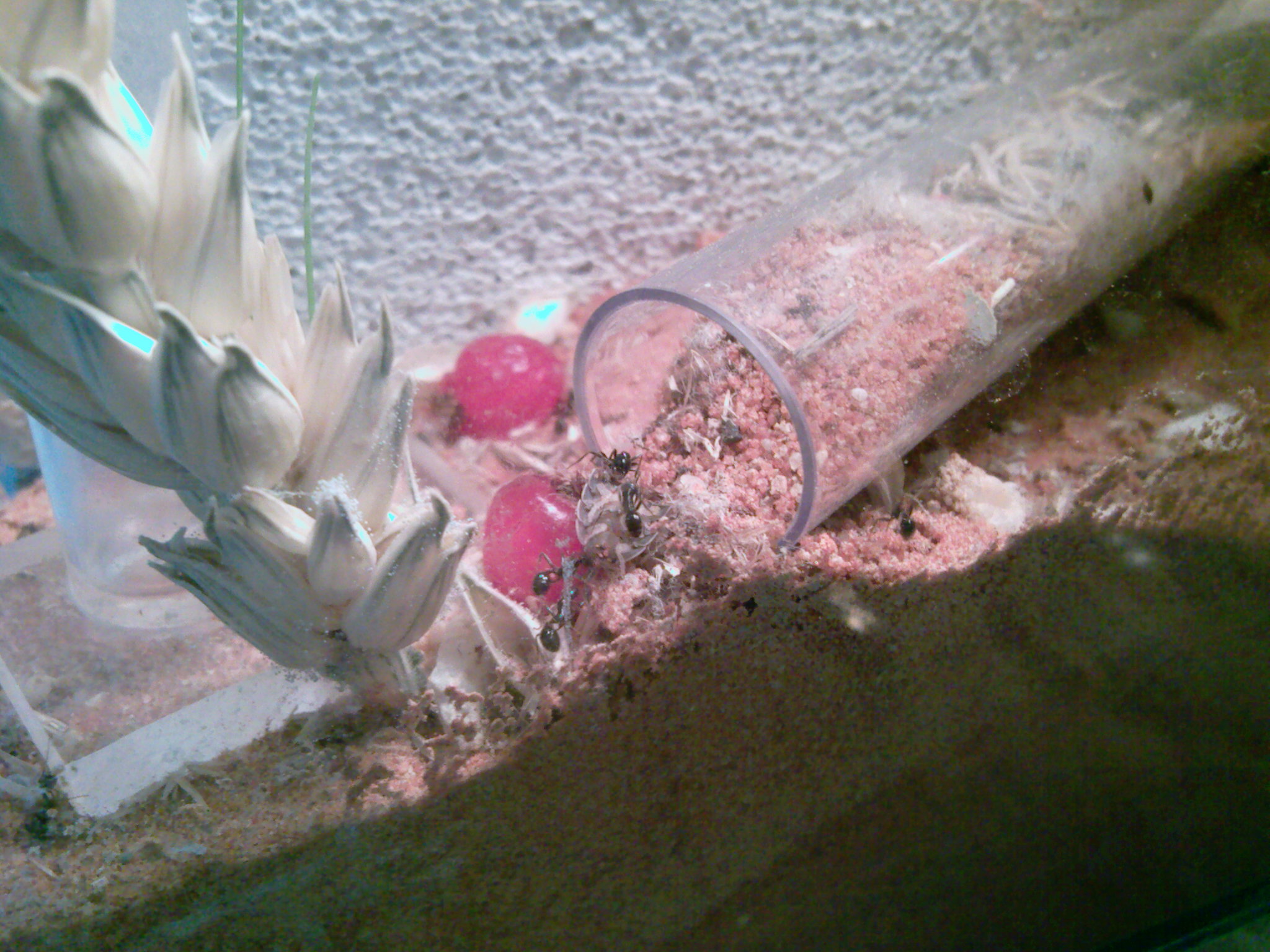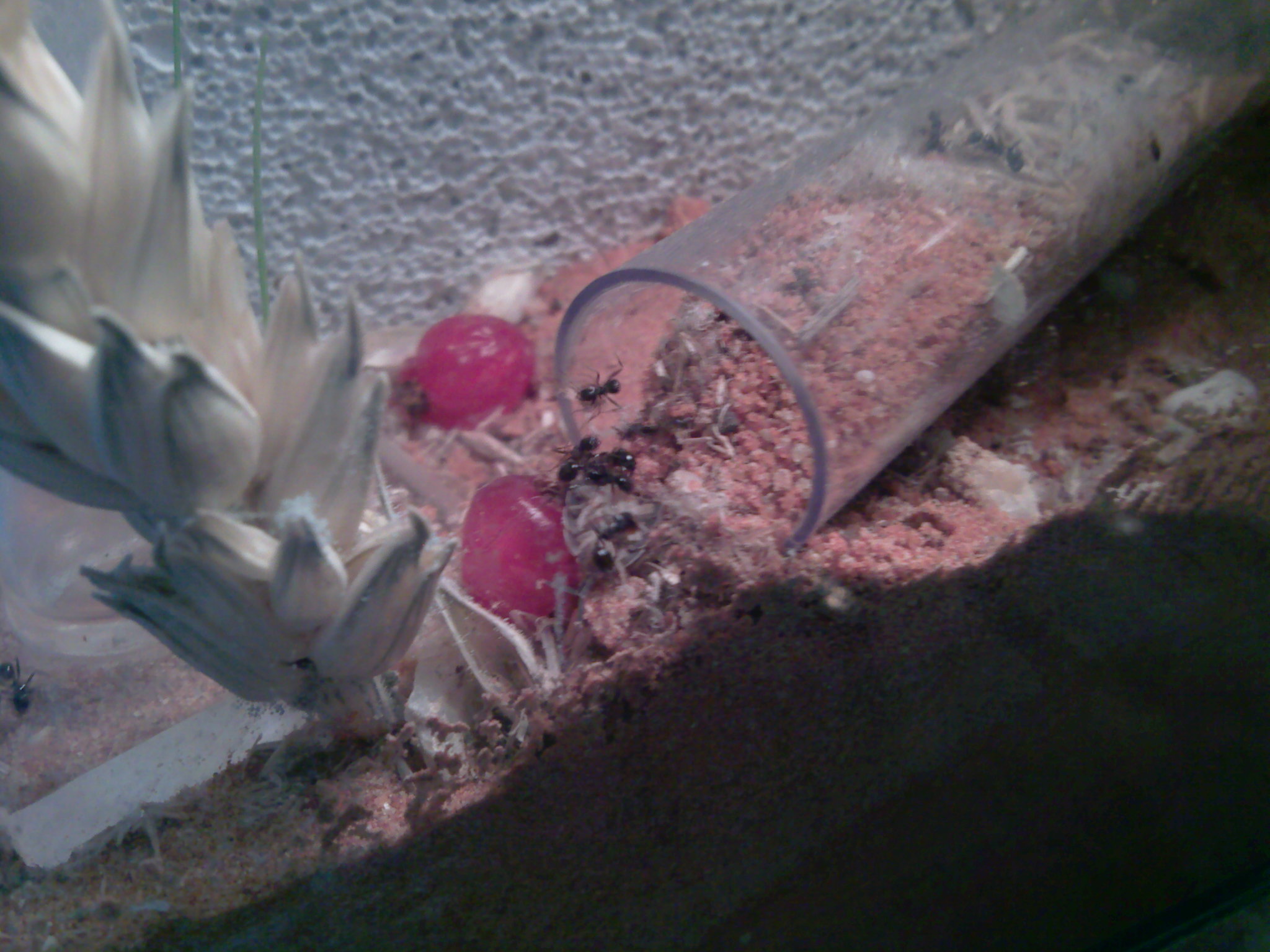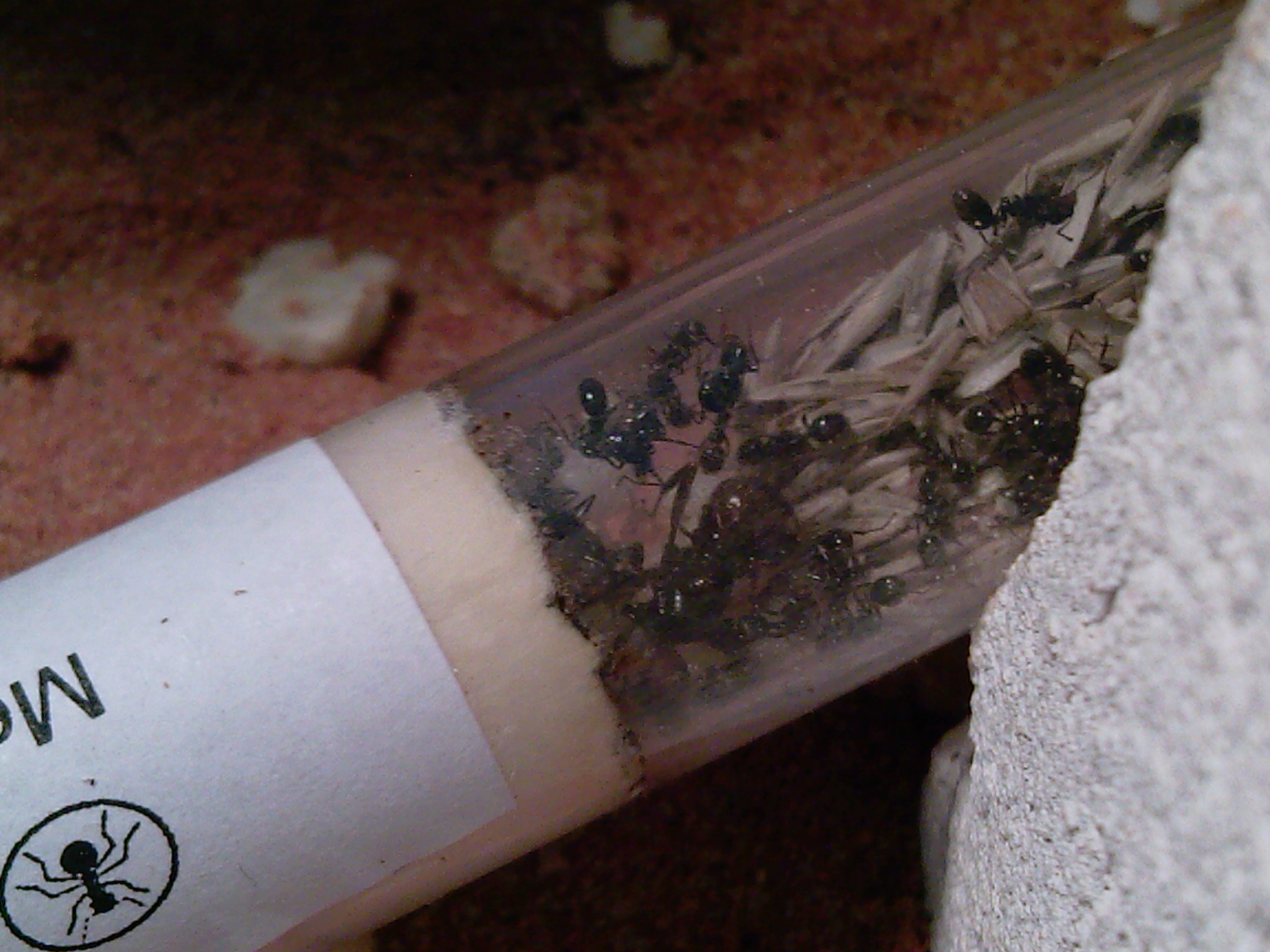 Ja und noch etwas merkwürdiges konnte ich beobachten, meine Messor barbarus schleppen nun alle Samen in den unbewohnten Ytong. Ich habe auch ein paar Bilder wie das aussieht. Wenn jemand eine Ahnung hat was die da machen bitte auch wieder in den
