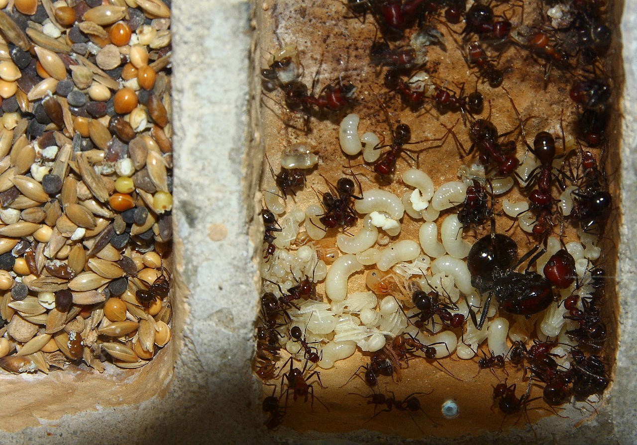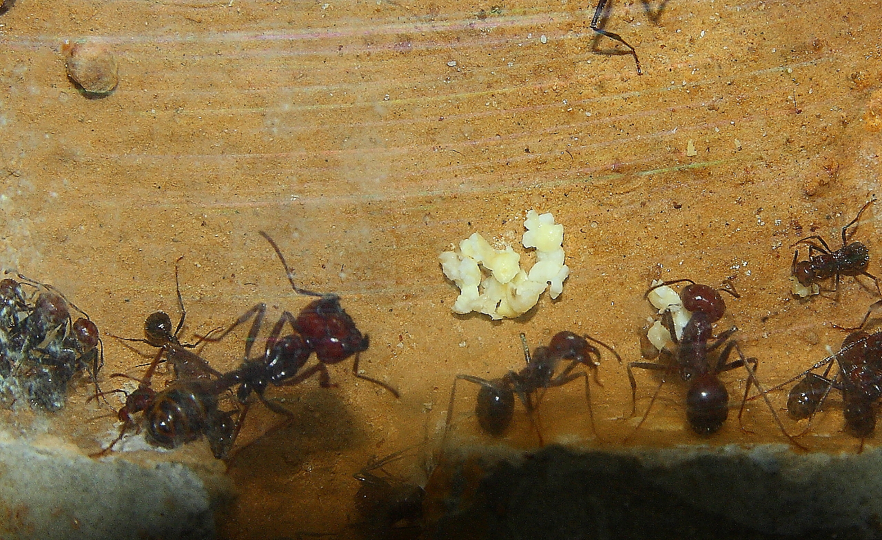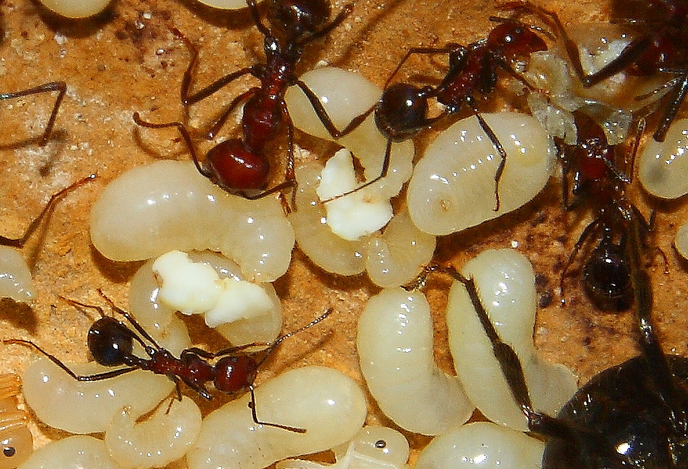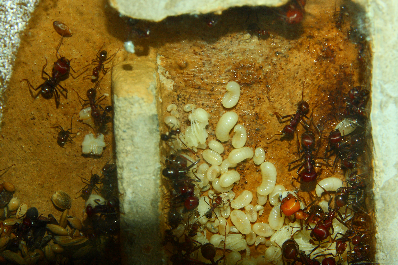 Messor cephalotes Larven futtern Ameisenbrot.jpg