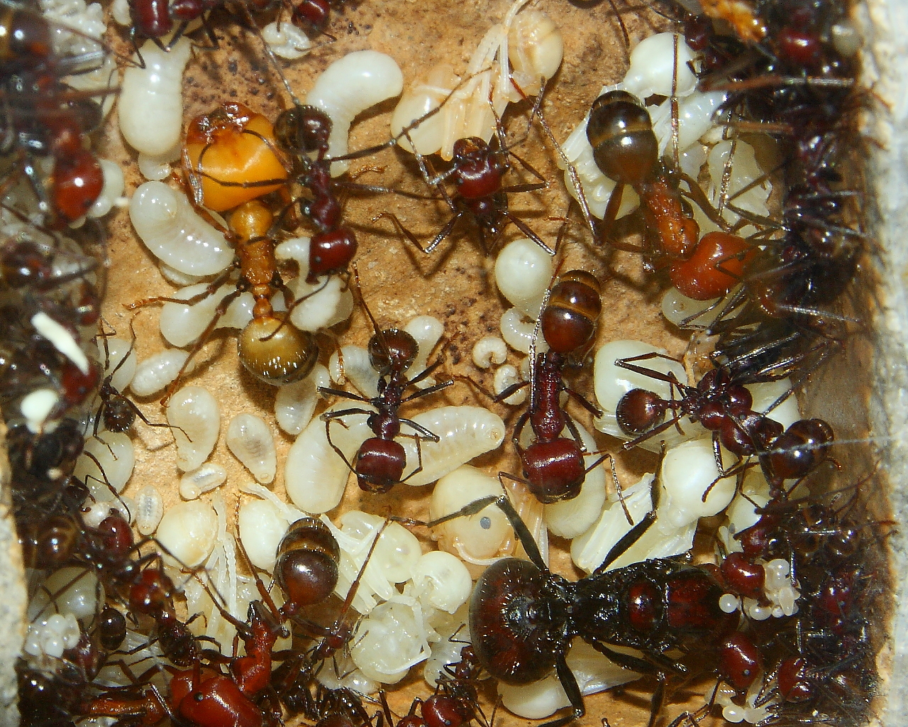 Einige größere Larven werden aufgezogen und die ersten größeren Arbeiterinnen schlüpfen.