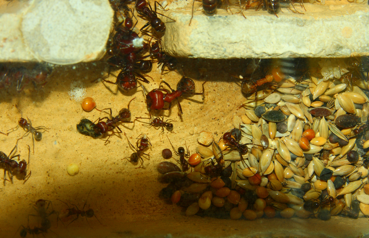 Einige Körner, die sie eintragen und schälen und dann zu „Ameisenbrot“ zerkauen, zerkleinern und einspeicheln, davon können sie gut leben.
