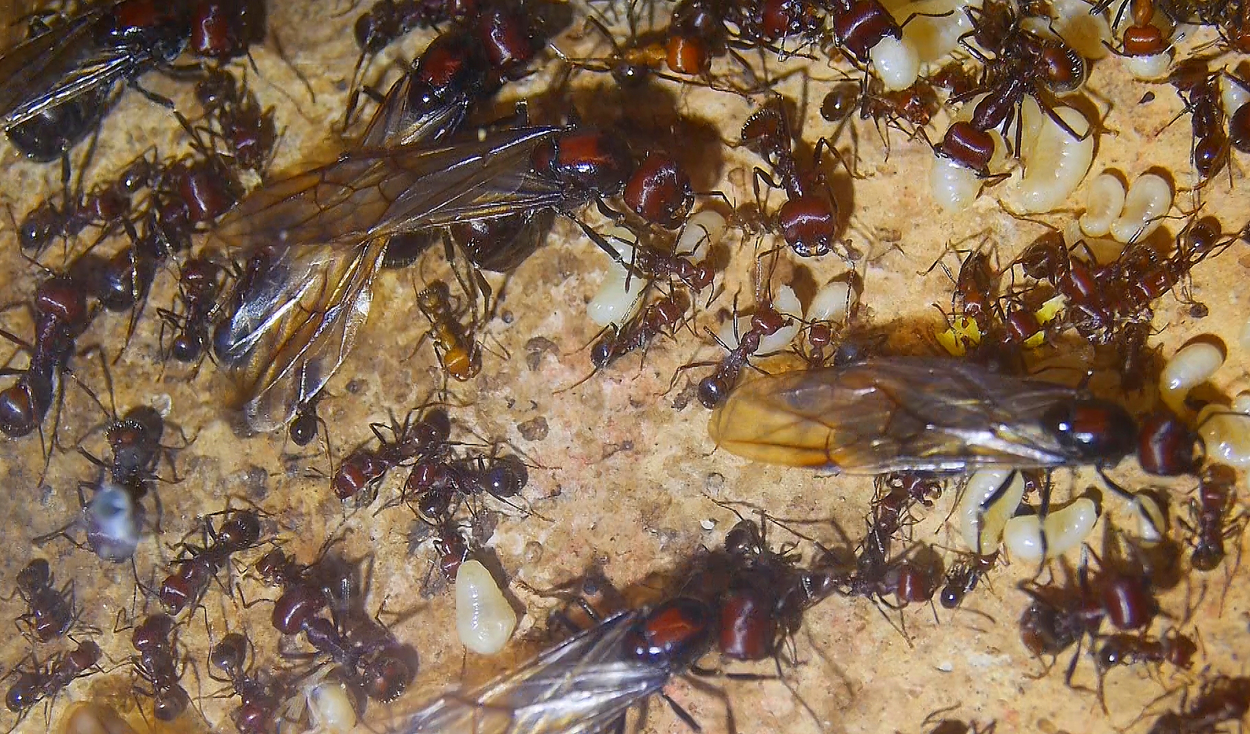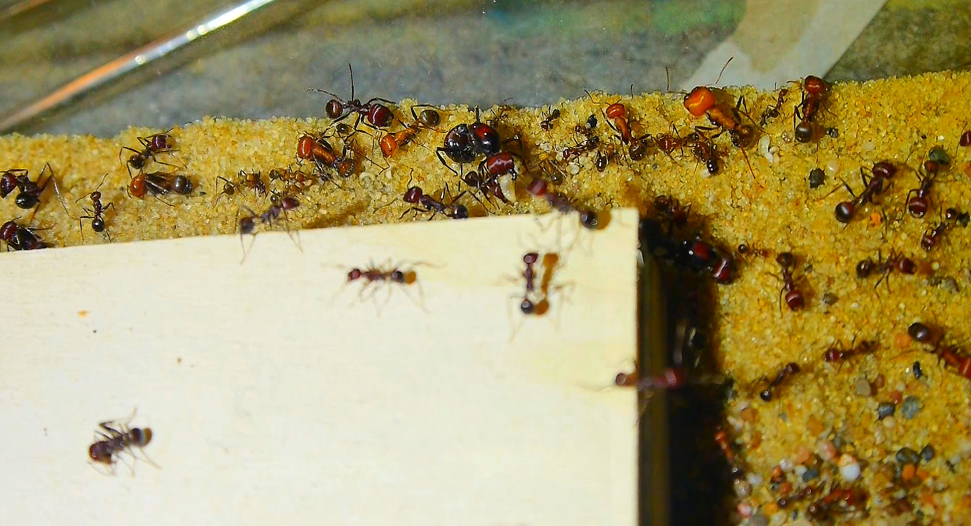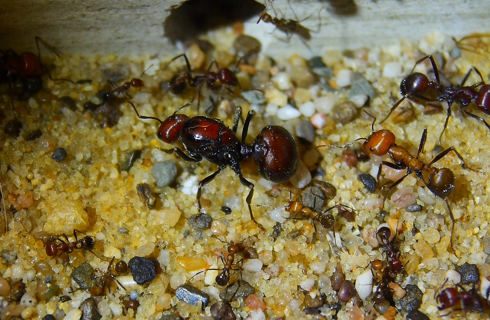 Einzig Jungköniginnen die sich ihre Flügel abbrachen, verblieben im Net, vorab wurden diese im Nest nicht geduldet.