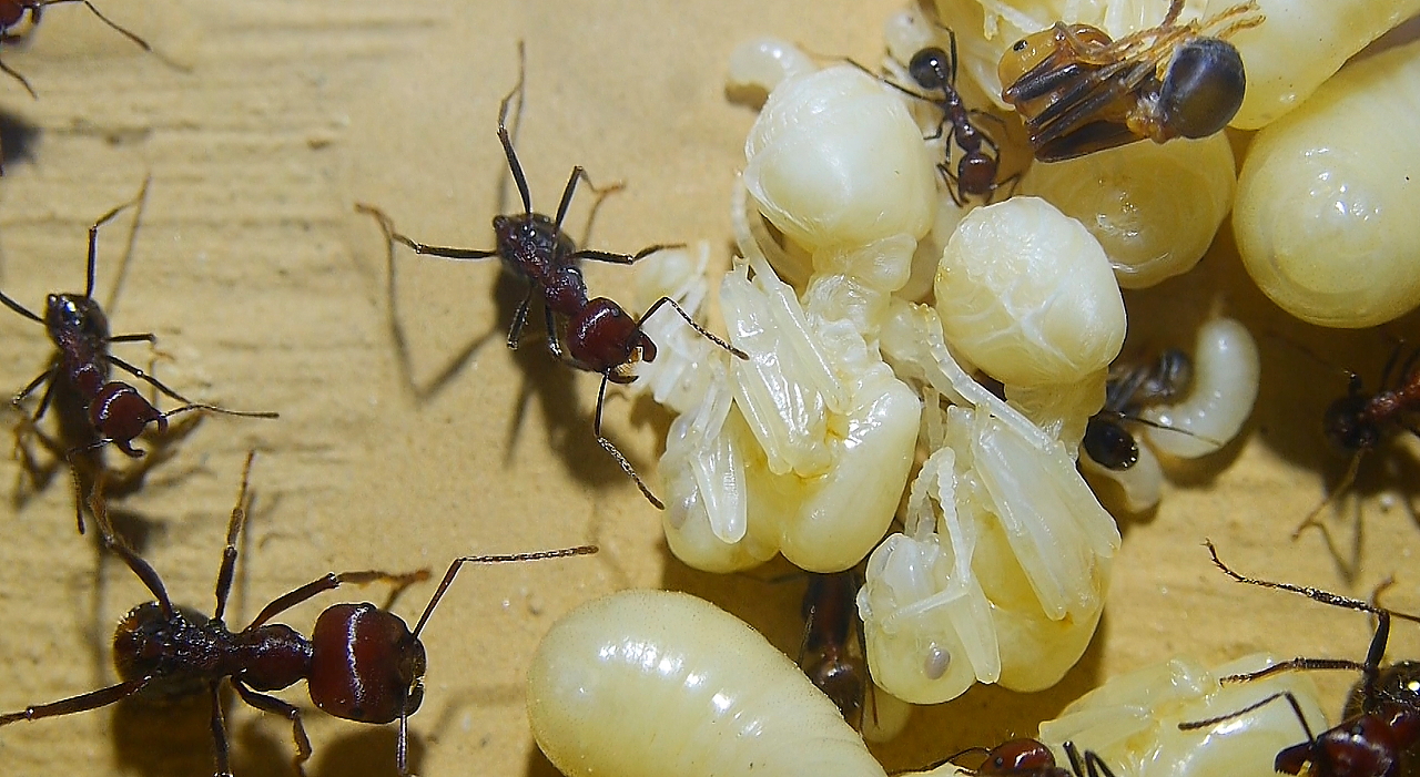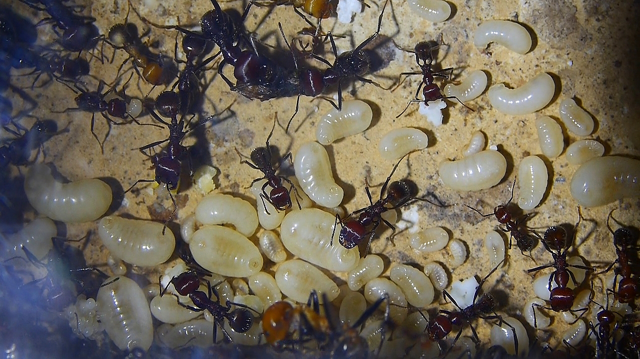 Heute schlüpfen bereits wieder erste Ameisen, die sich ganz normal verhalten.
