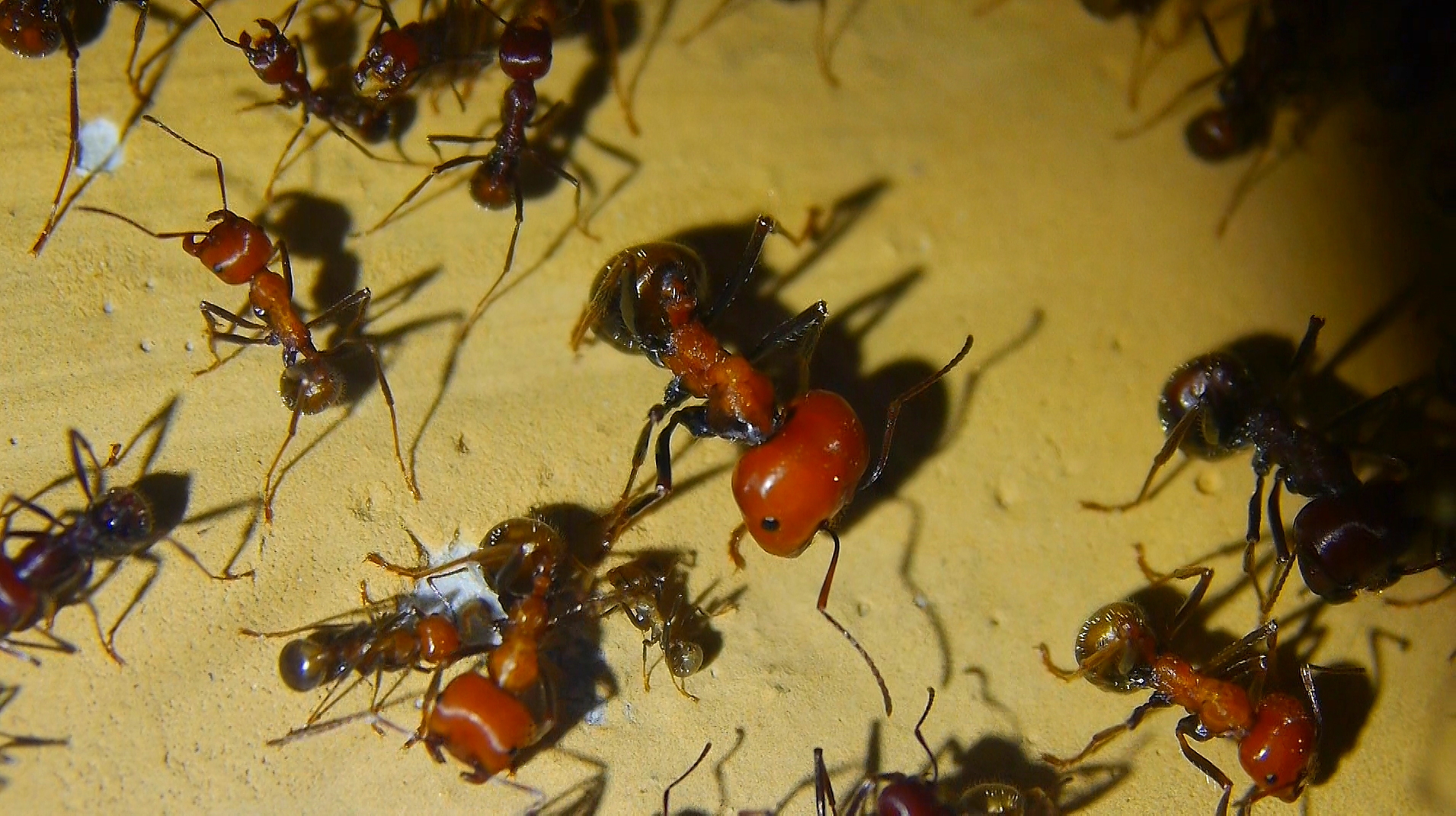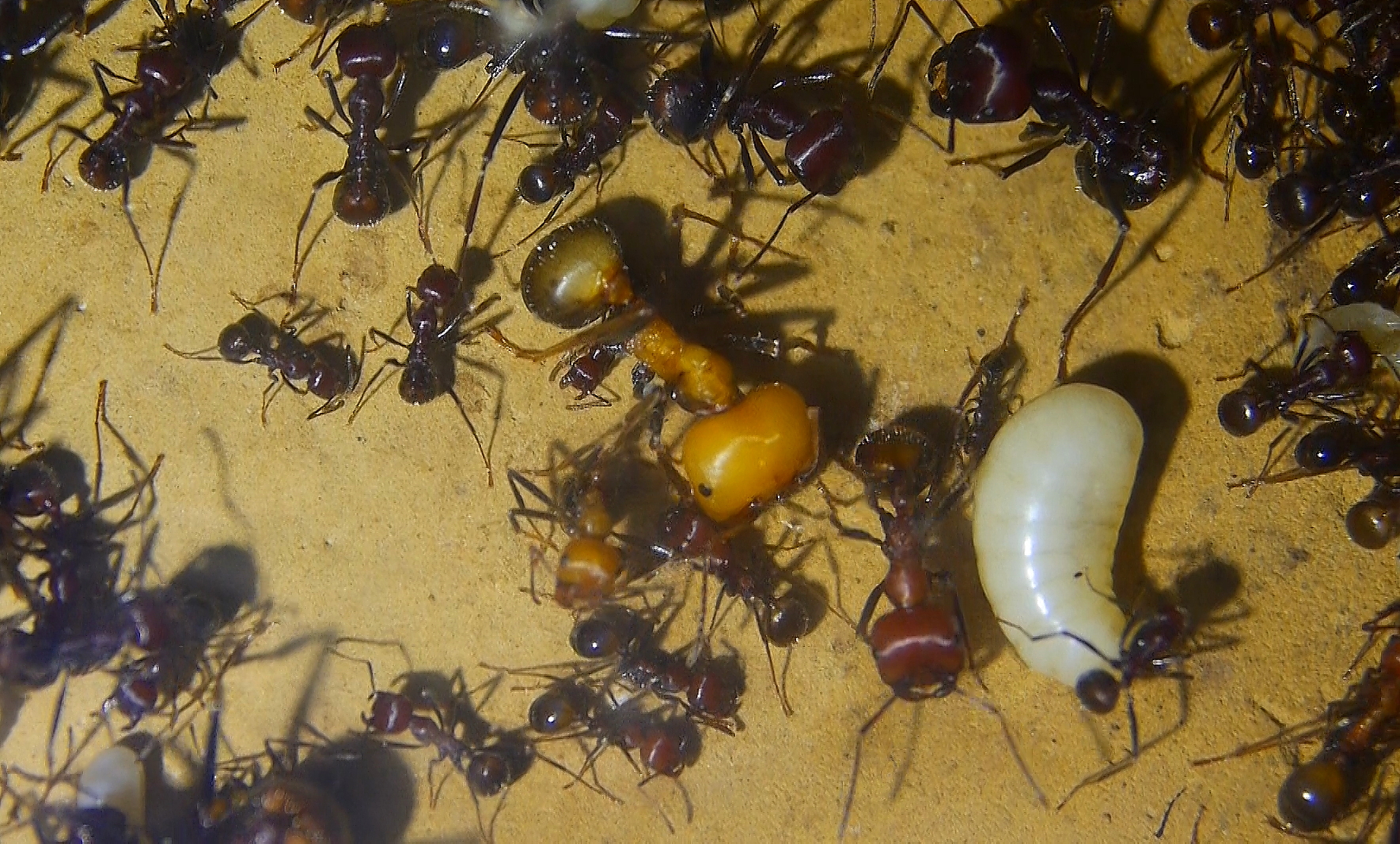Teilnahmslose Ameisen, kaum Reaktionen auf Erschütterungen oder Lichteinfall.