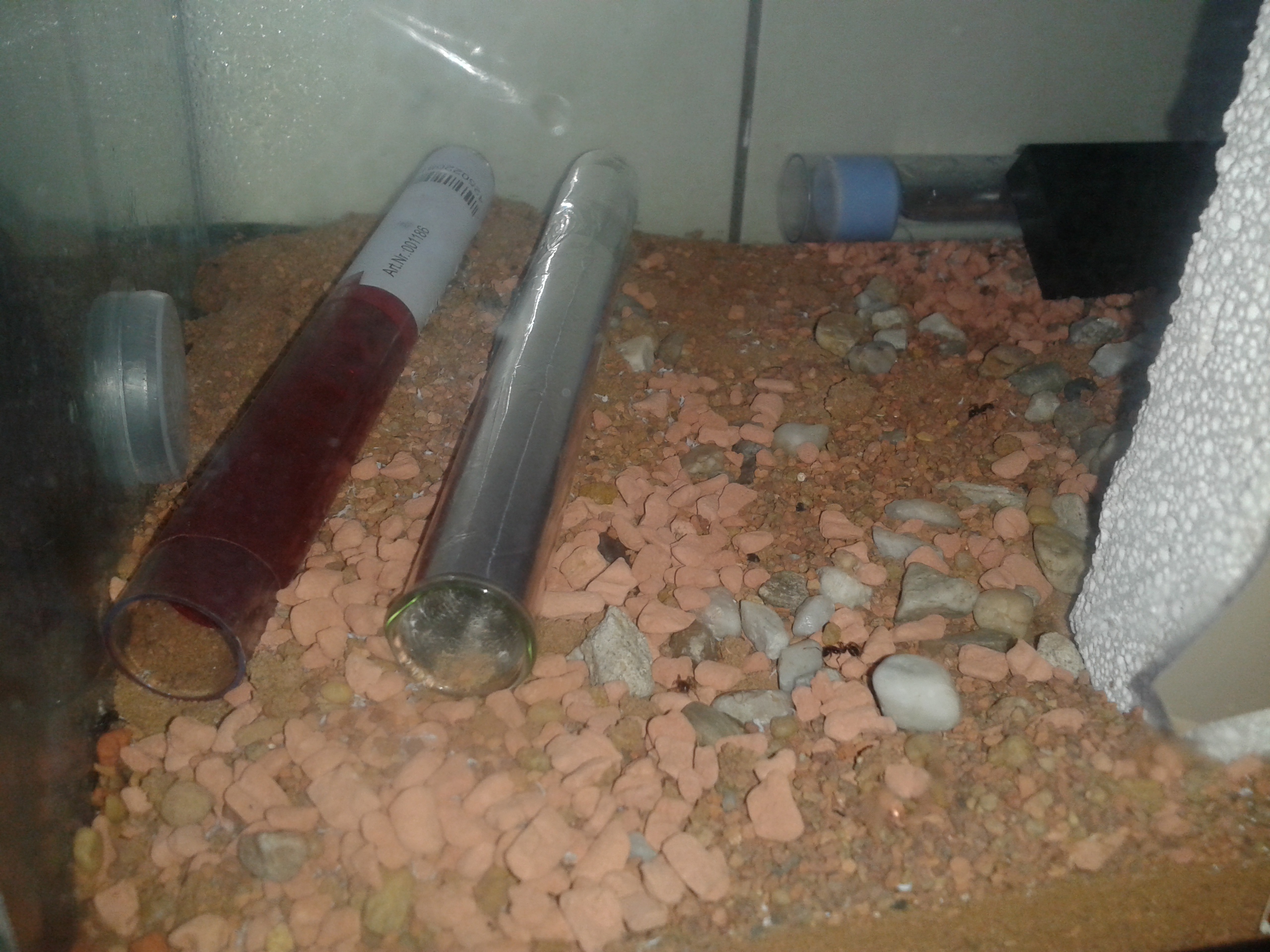 Die 2 Reagenzgläser werden nach wie vor oft als Nest genutzt, würde mich aber freuen, wenn ich diese langsam entfernen könnte. Wirklich gefallen tun diese mir schon etwas länger nicht mehr. Hier befindet sich aber mindestens einmal die Woche noch die ganze Kolonie.